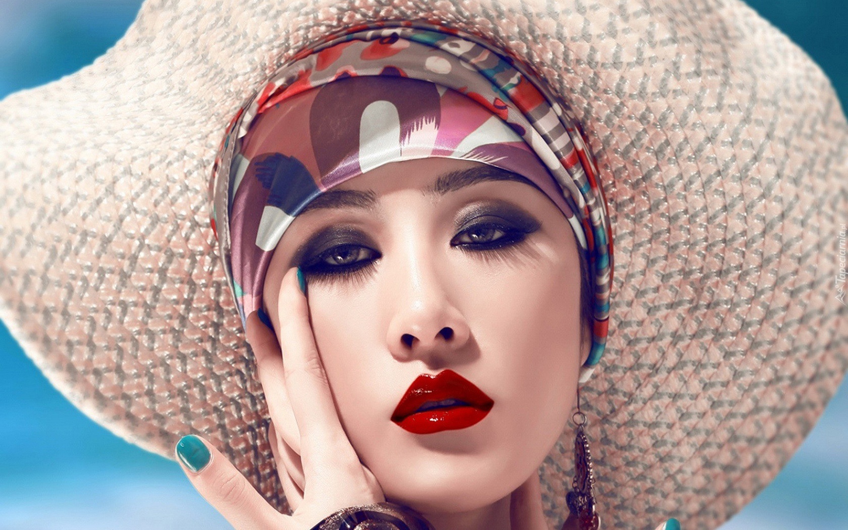 Edytor tapety: Kobieta, Kapelusz, Makijaż, Biżuteria