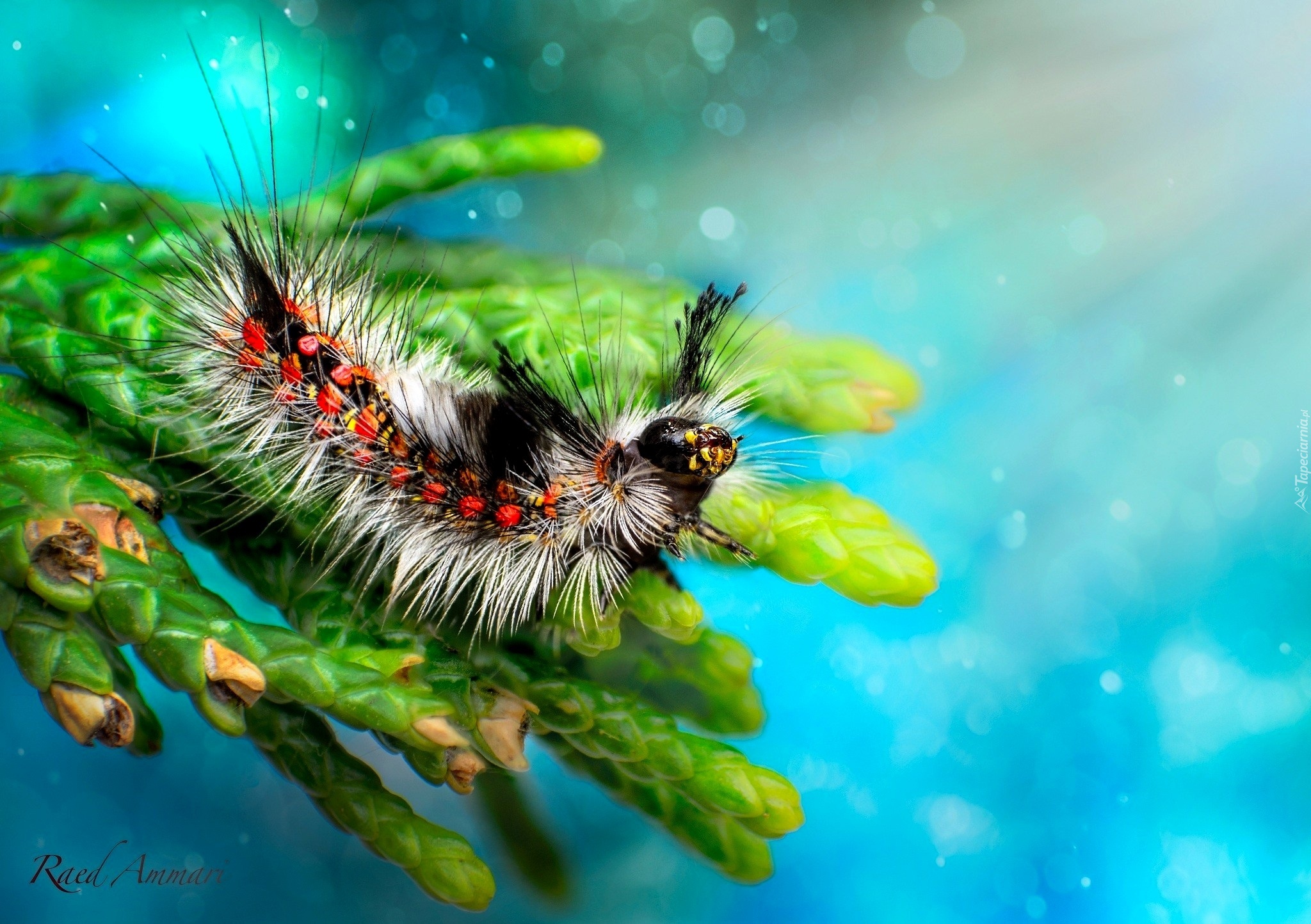 Edytor tapety: Kolorowa, Gąsienica, Makro