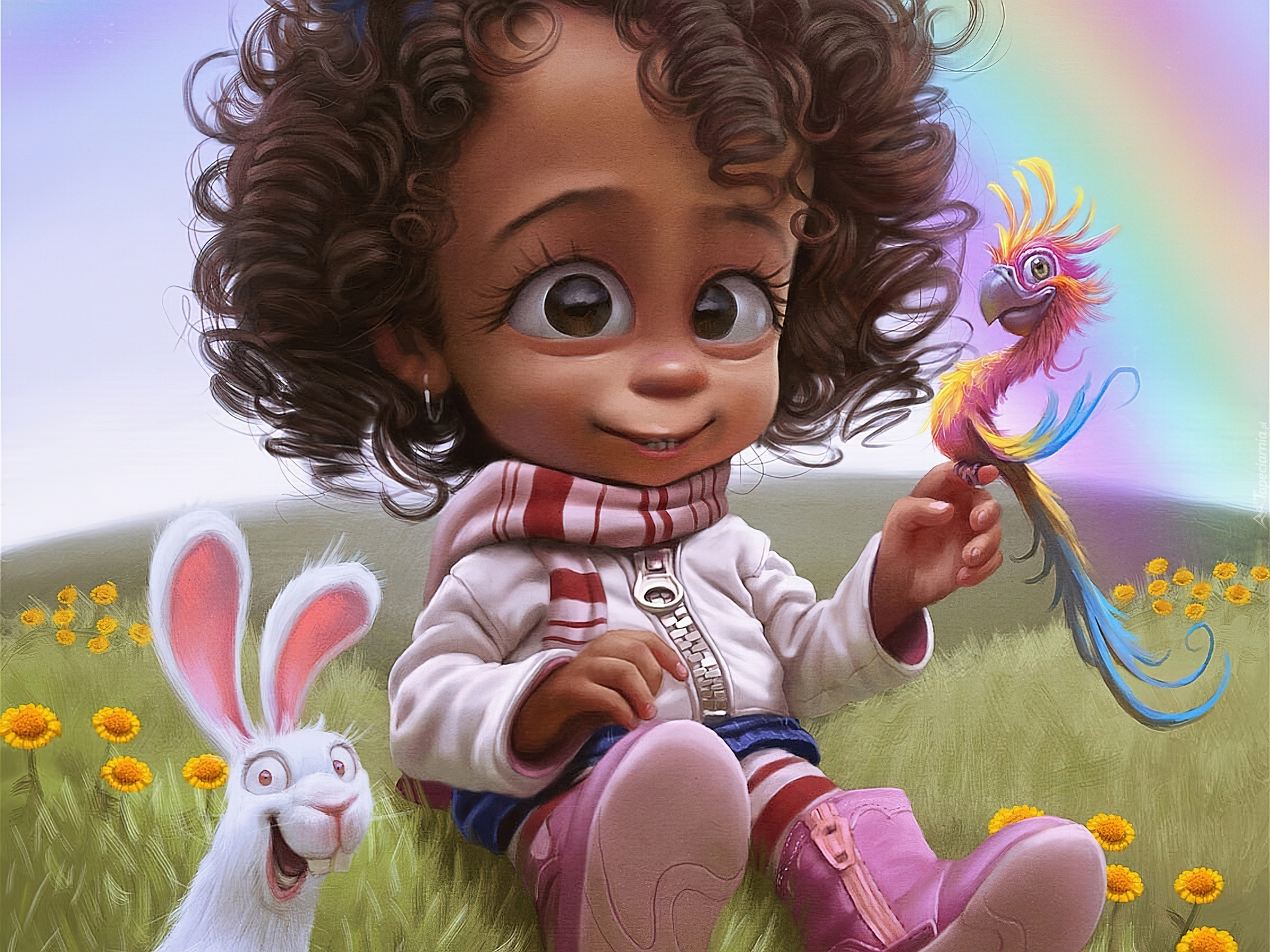 Edytor tapety: Dziewczynka, Króliczek, Tęcza