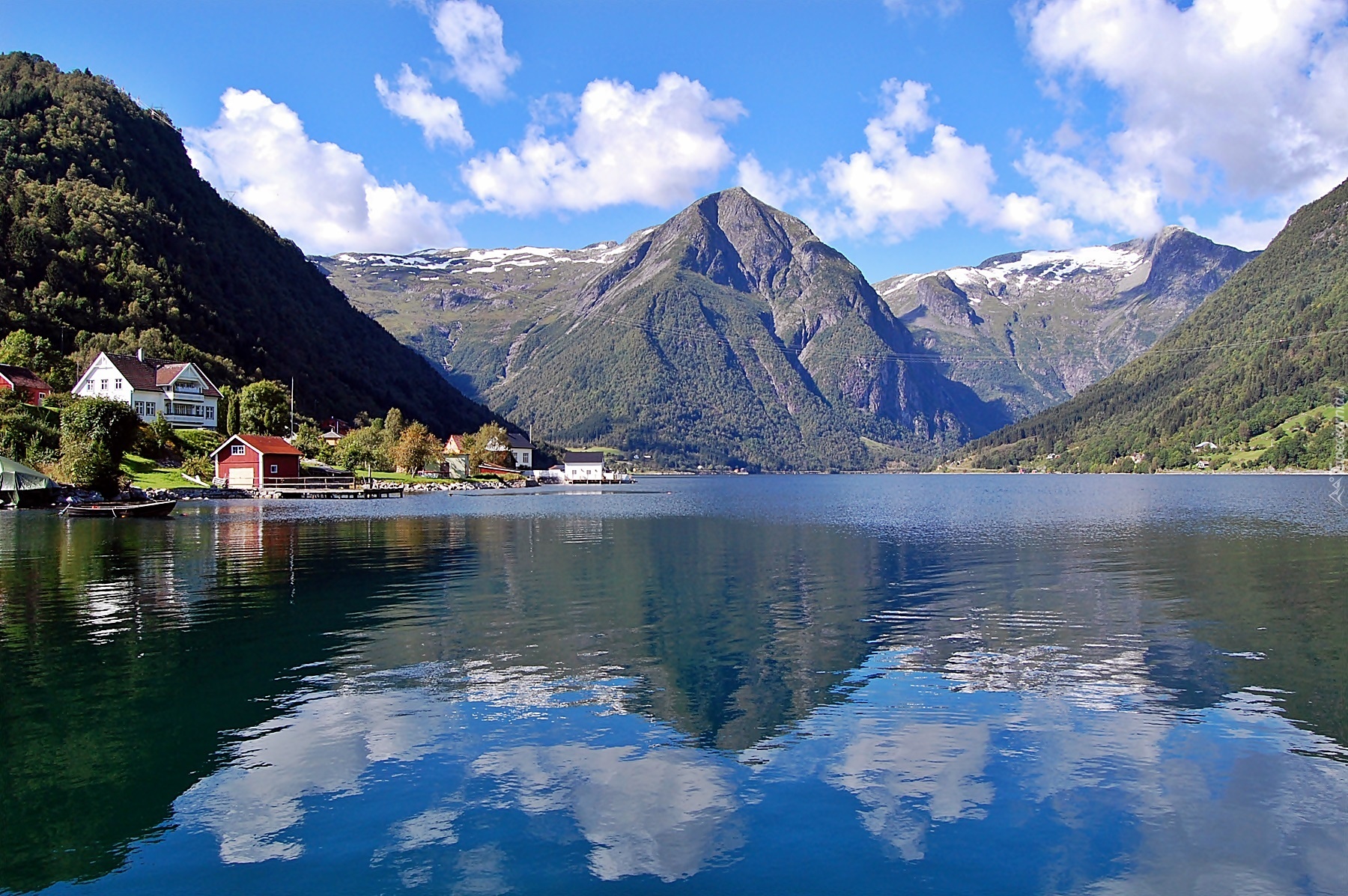 Edytor tapety: Góry, Lasy, Sognefjord, Domy, Przebijające, Światło