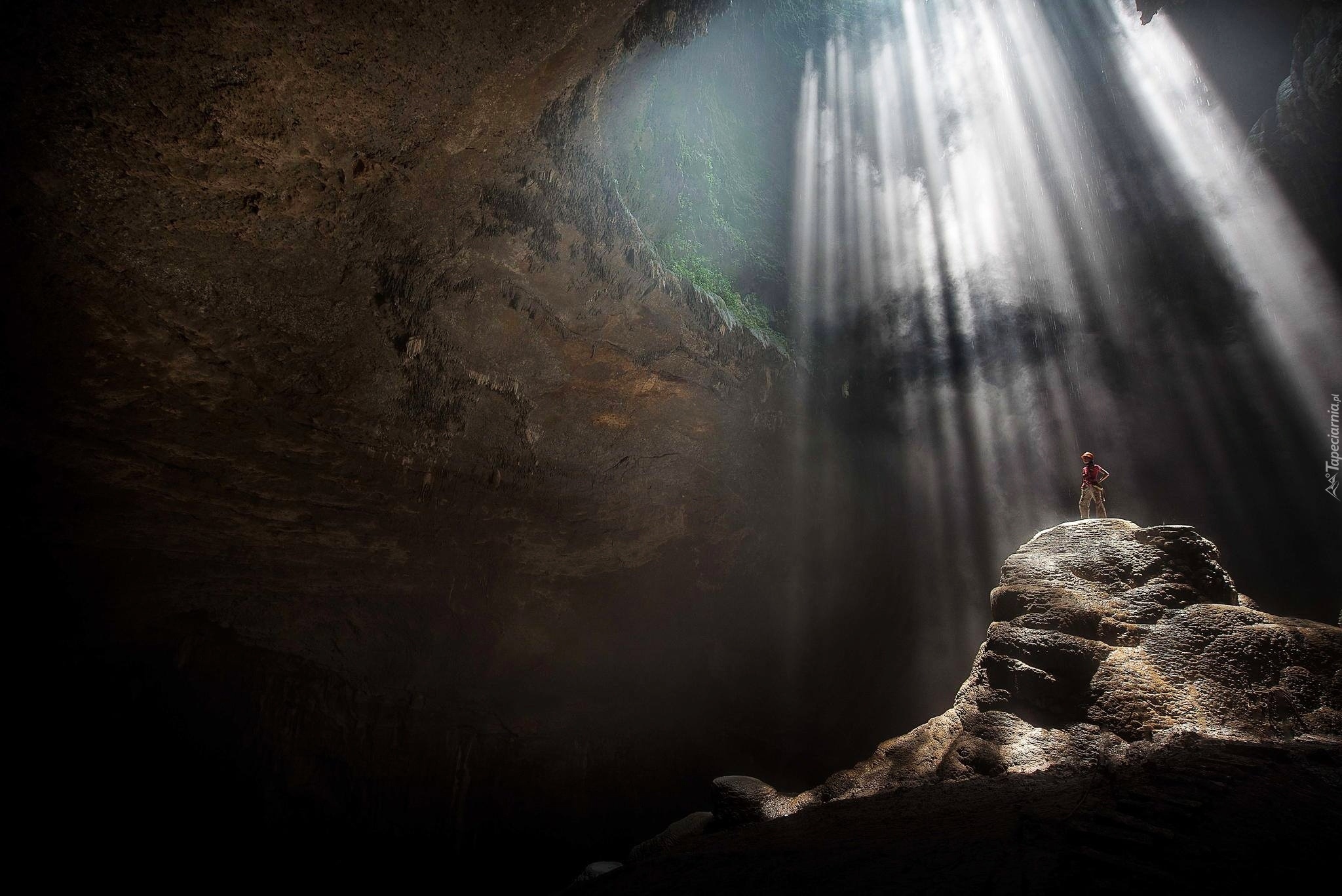 Edytor tapety: Jaskinia, Człowiek, Promienie, Światła