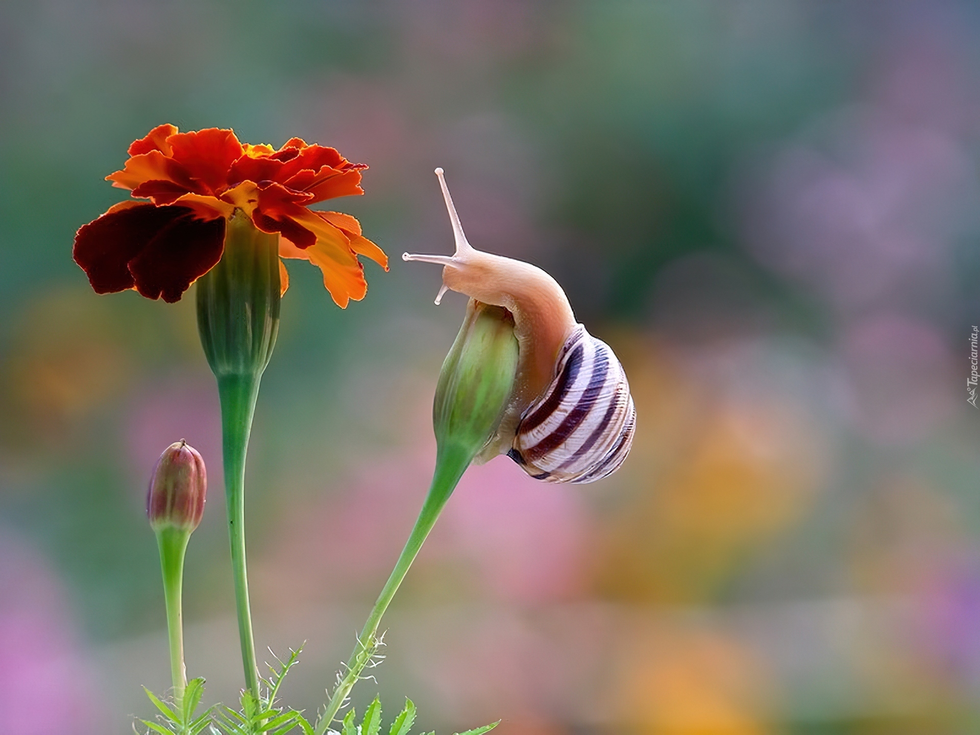 Edytor tapety: Kwiat, Pąki, Aksamitka, Ślimak