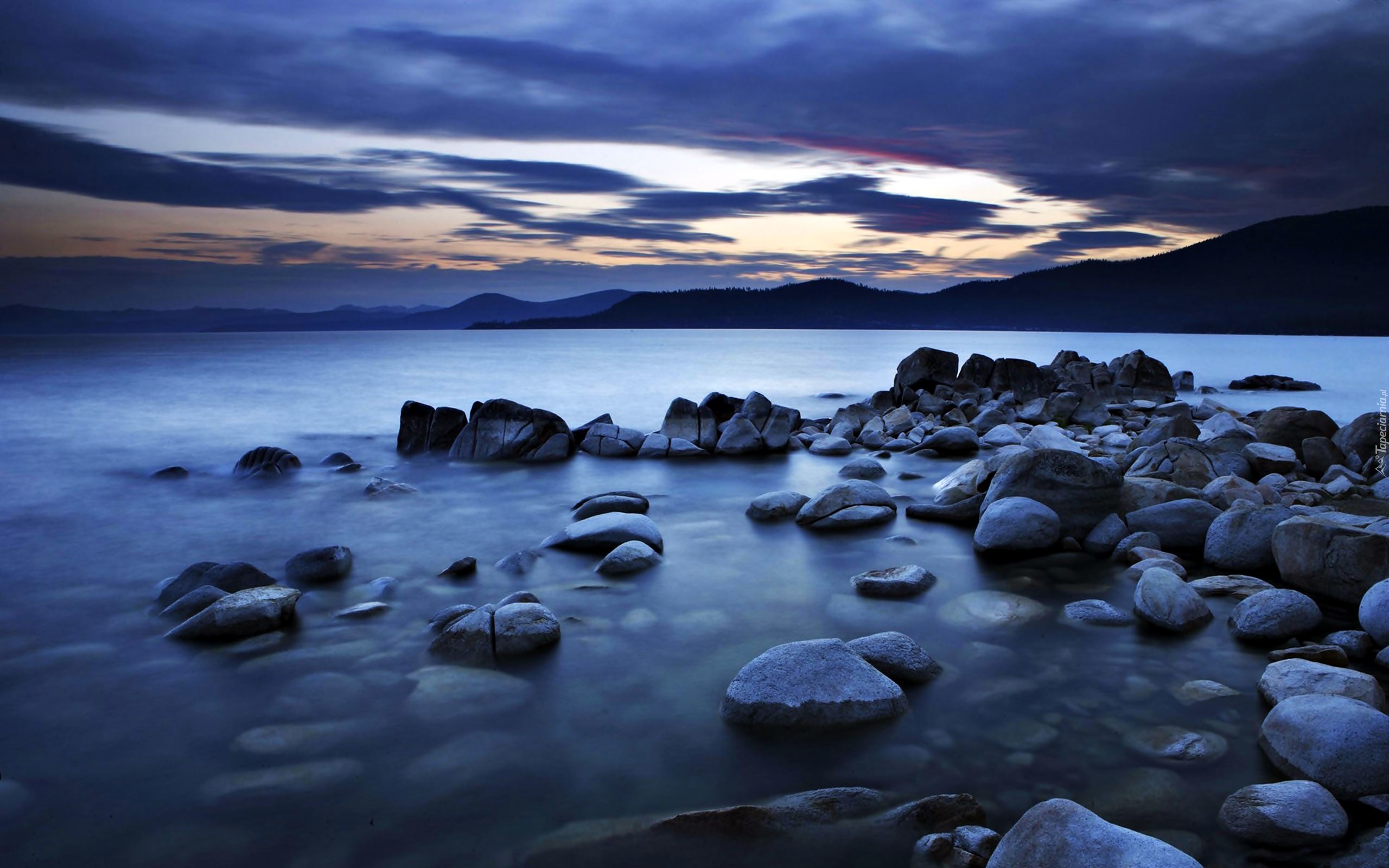 Edytor tapety: Jezioro, Kamienie, Chmury