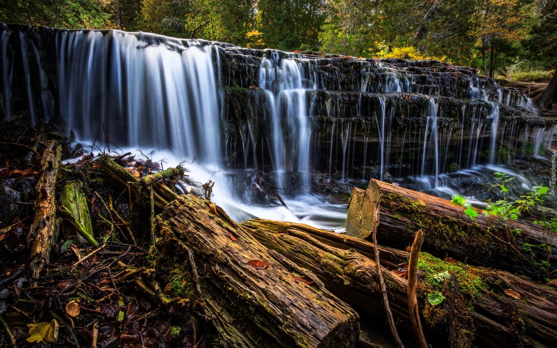 Edytor tapety: Wodospad, Las, Jesień