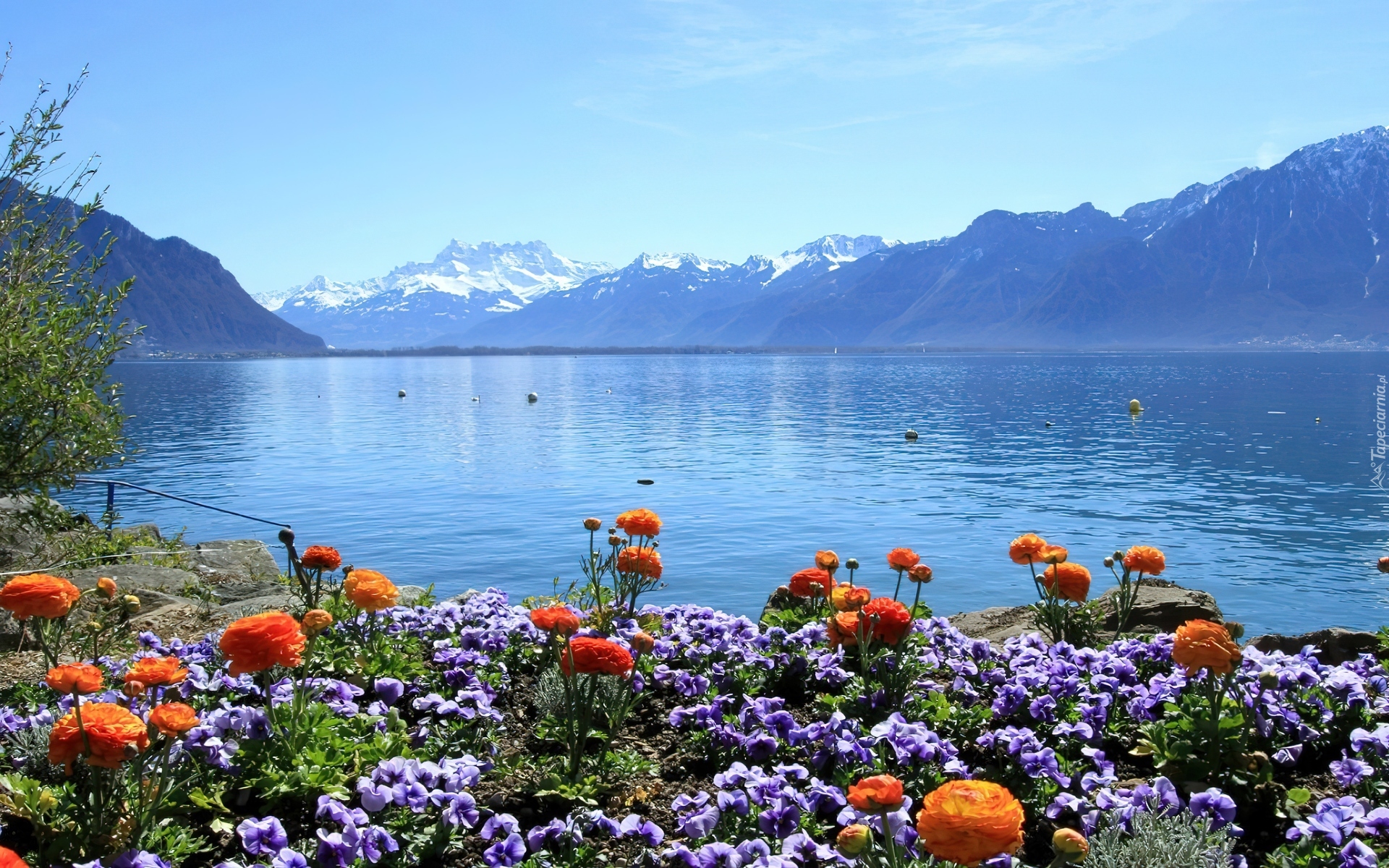 Edytor tapety: Jezioro, Góry, Kwitnące, Kwiaty