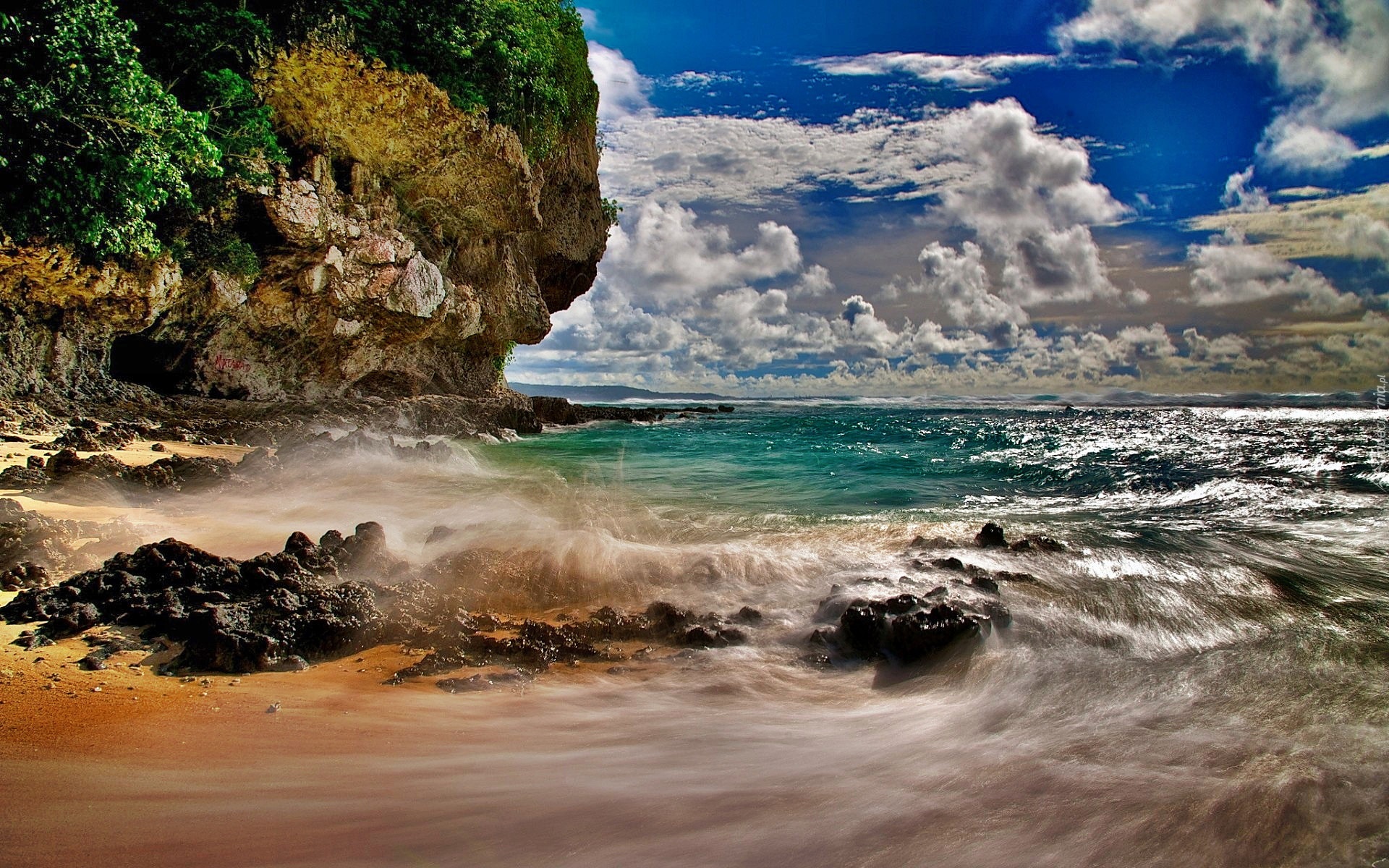 Edytor tapety: Niebo, Obłoki, Morze, Skalisty, Brzeg