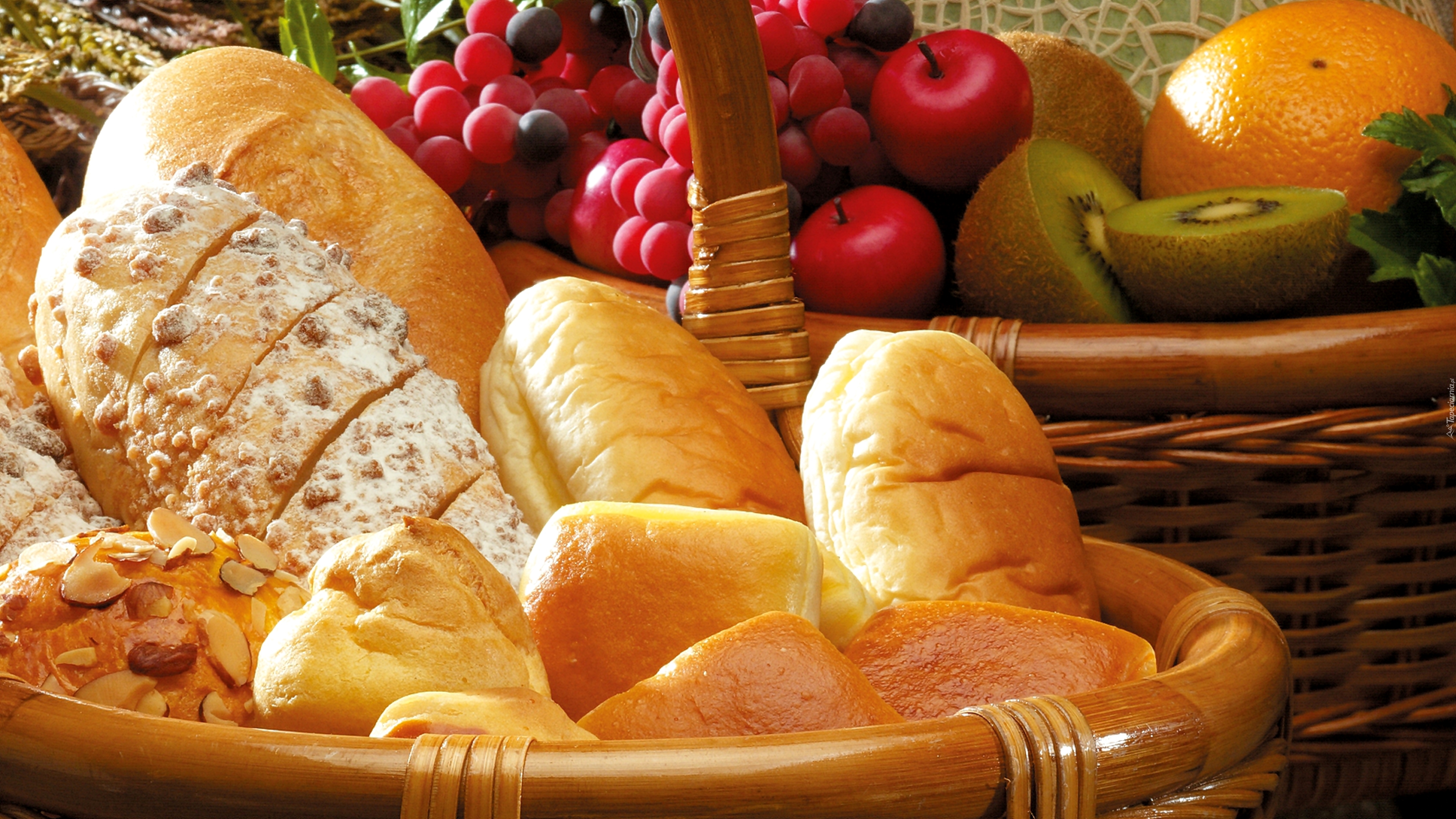 Edytor tapety: Różne, Owoce, Bułki, Chleb, Kosze