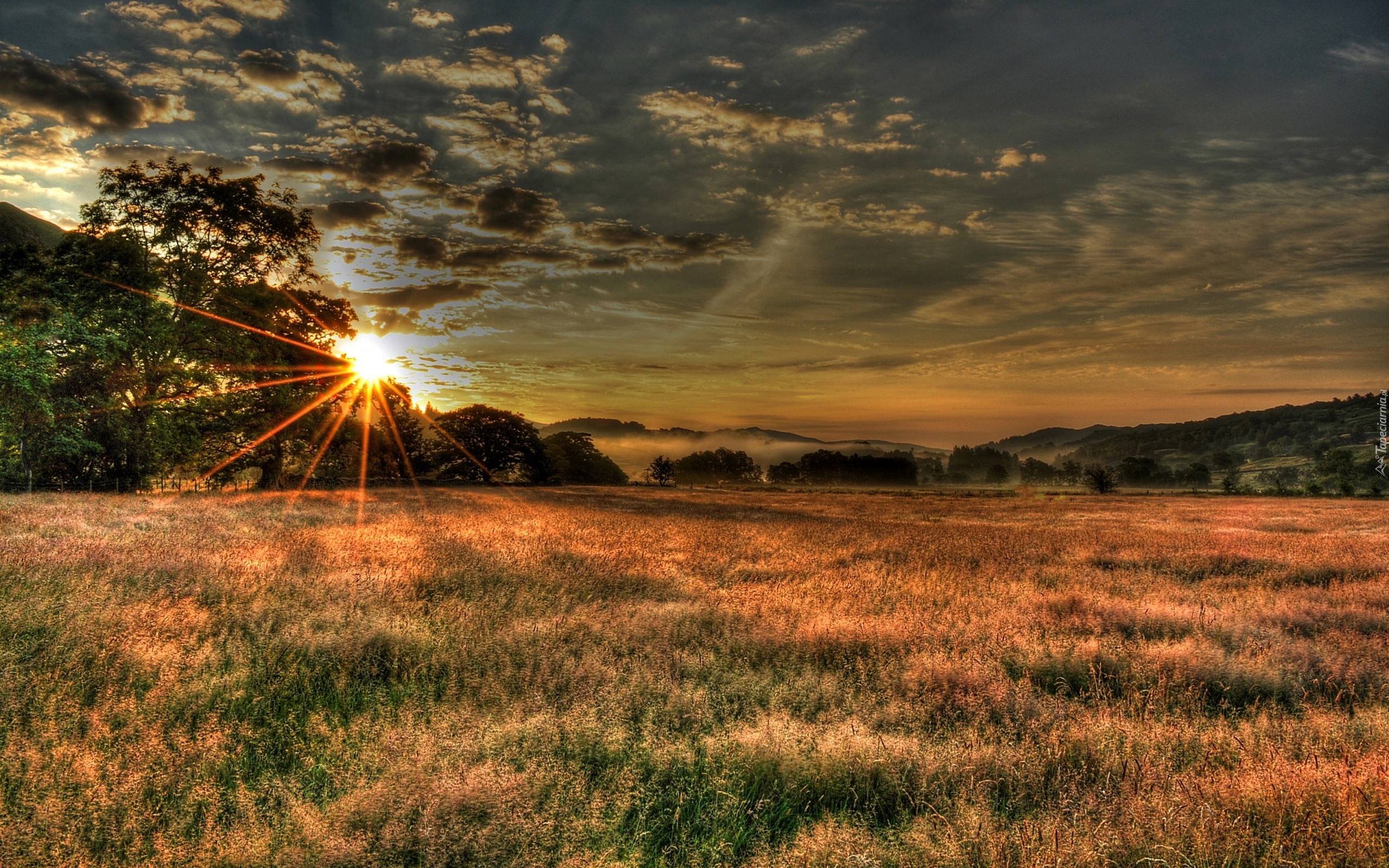 Edytor tapety: Łąki, Góry, Lasy, Promienie, Słońca, Chmury, Jesień