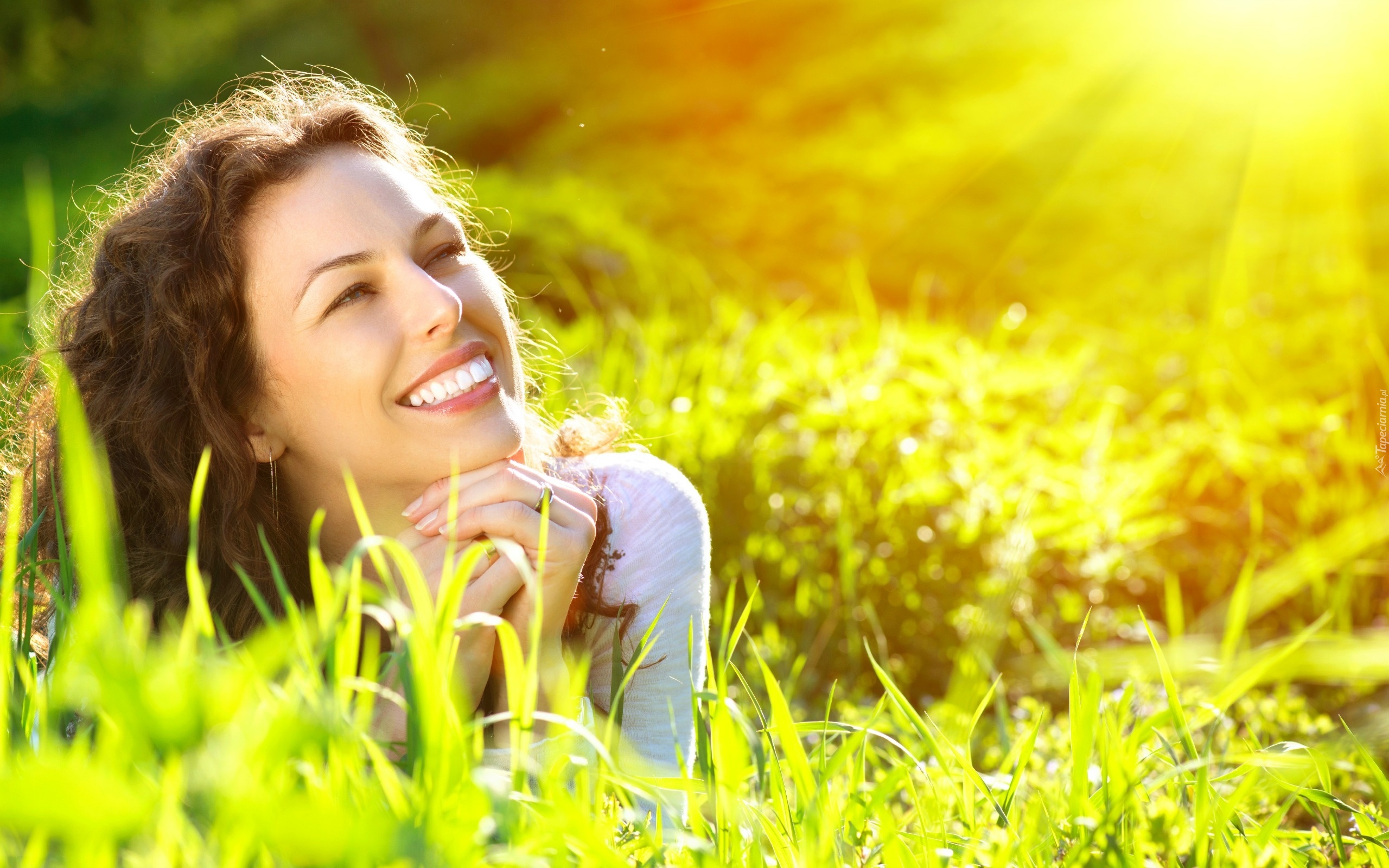 Edytor tapety: Kobieta, Łąka, Promienie, Słońca, Relaks