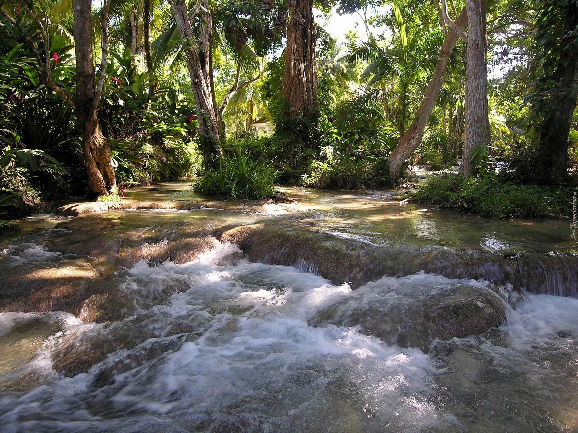 Edytor tapety: Las, Rzeka, Głazy, Przebijające, Światło