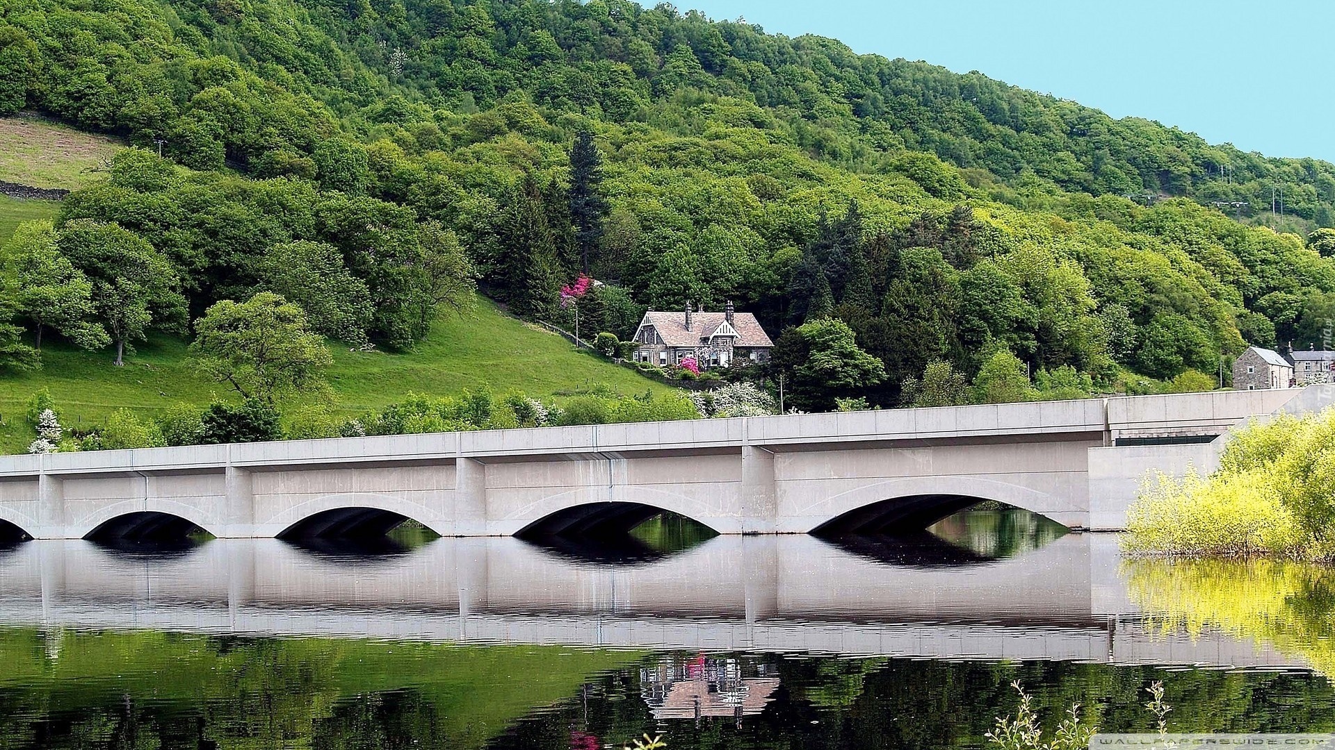 Edytor tapety: Domy, Most, Rzeka, Las