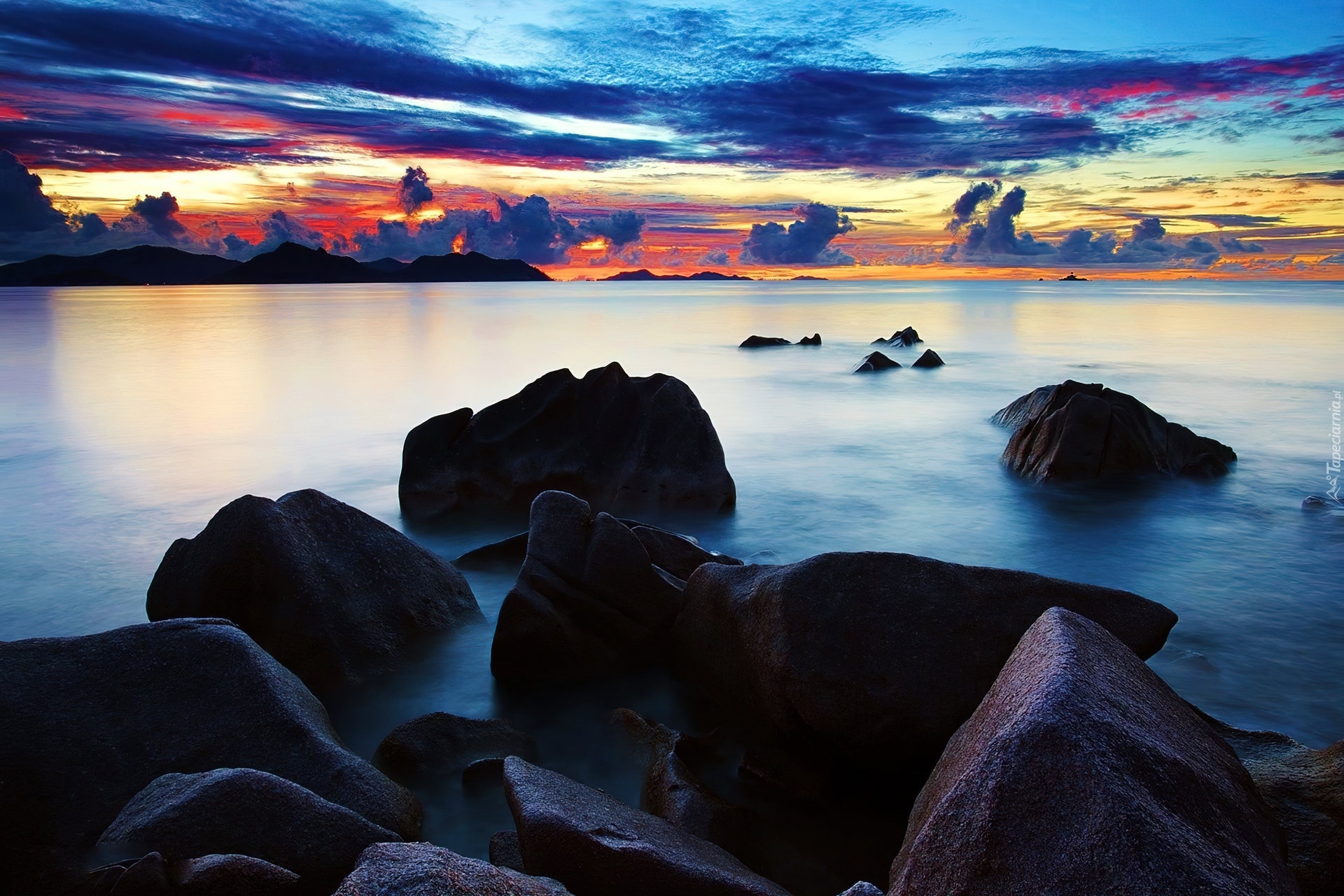 Edytor tapety: Zachód, Słońca, Kamienie, Morze