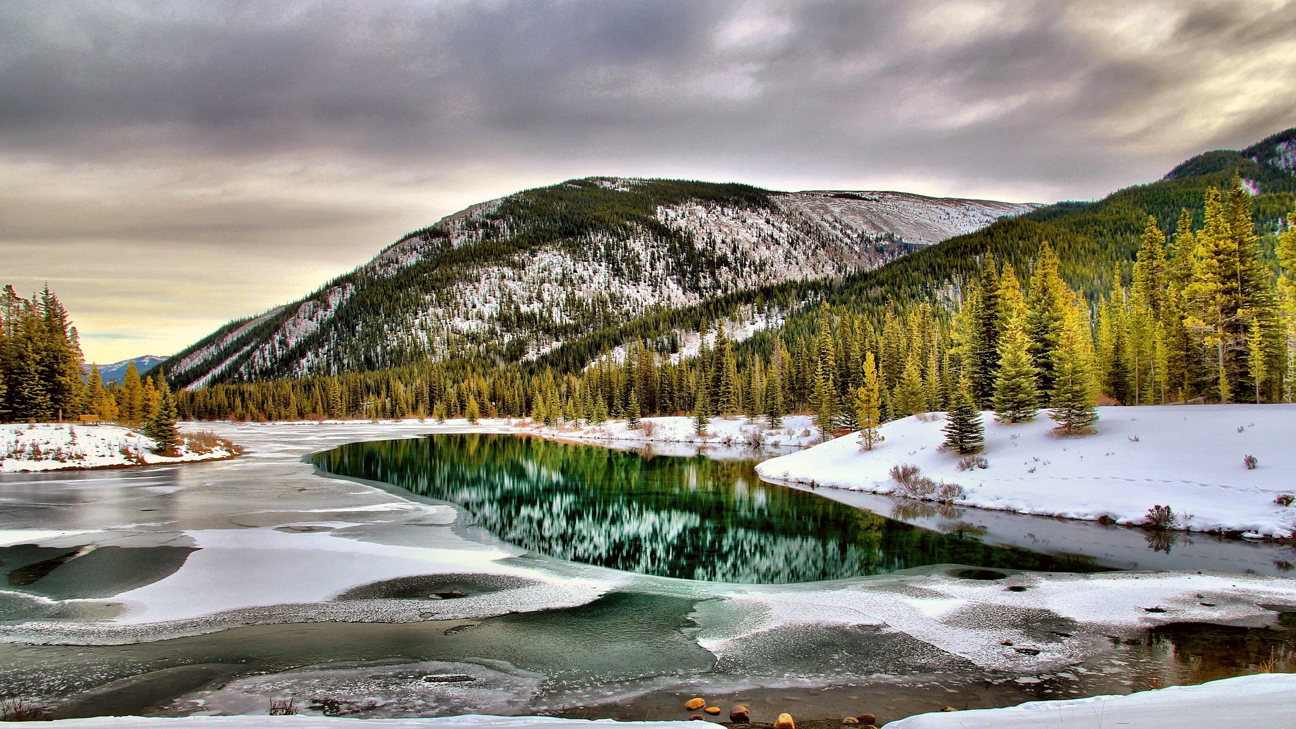 Edytor tapety: Jeziorko, Góry, Lasy, Zima