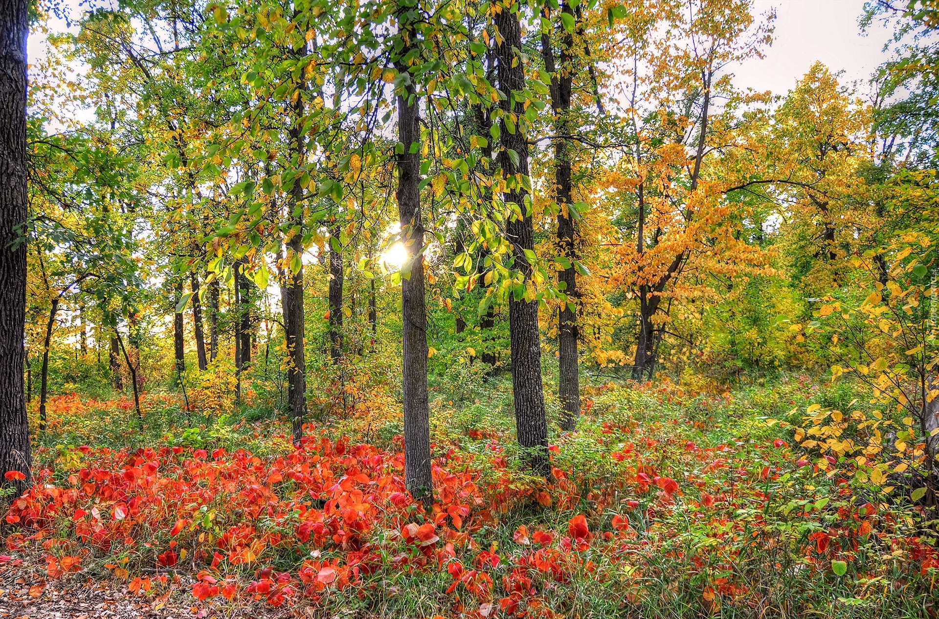 Edytor tapety: Jesień, Las, Kolorowe, Liście