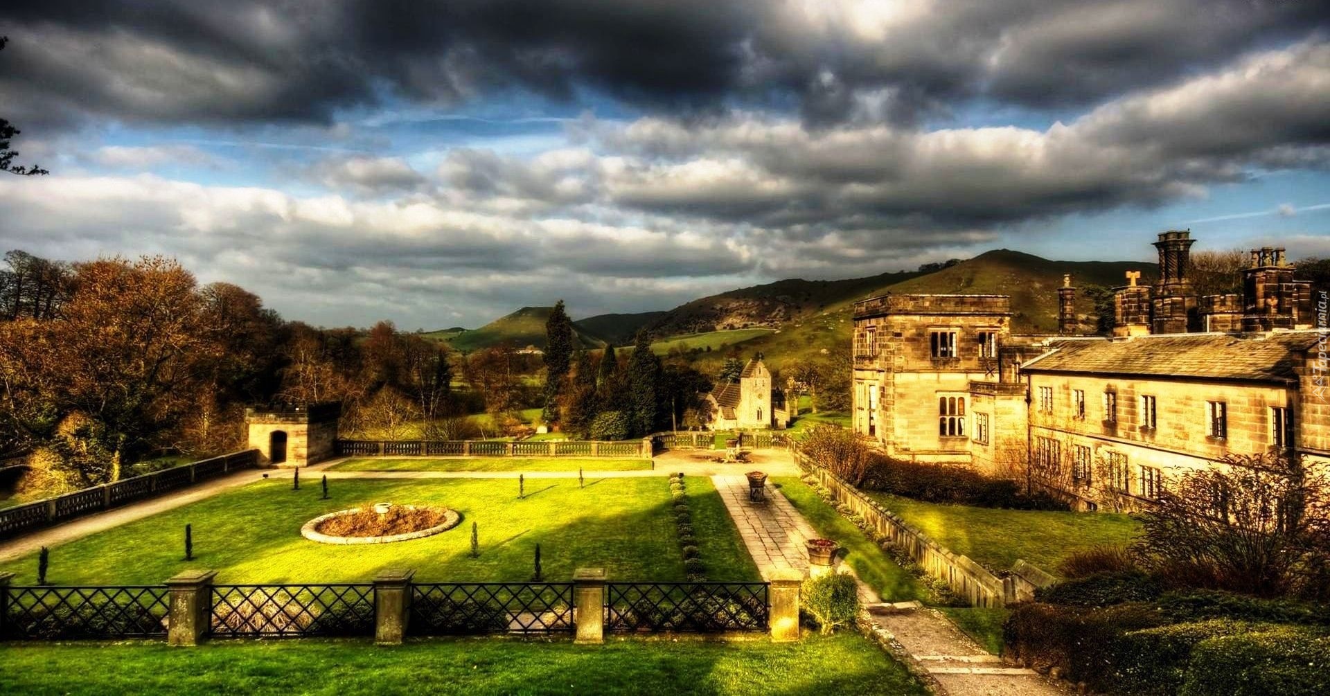 Edytor tapety: Dom, Ogród, Chmury, Ilam Hall, Anglia