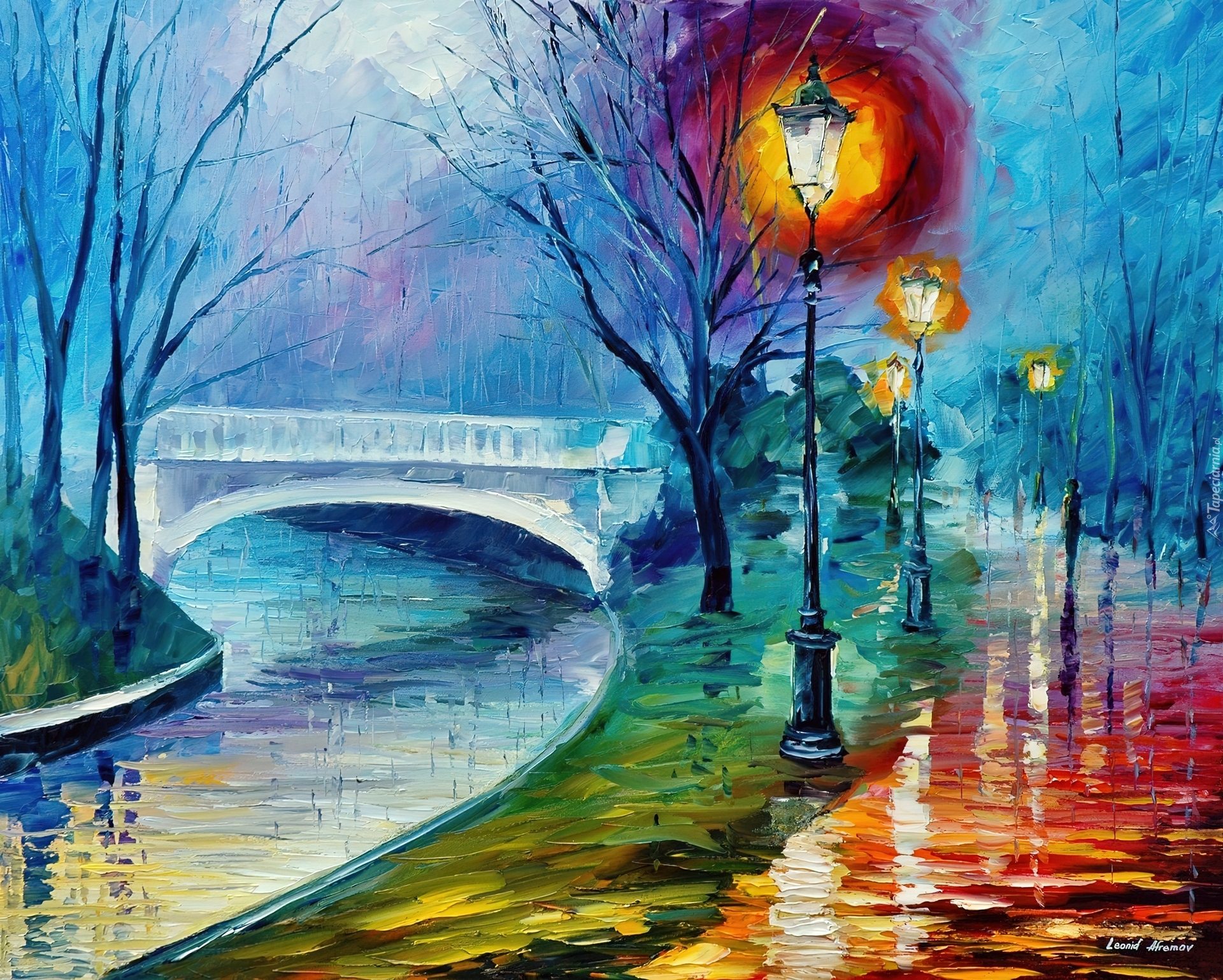 Edytor tapety: Park, Most, Leonid Afremov, Obraz, Olej