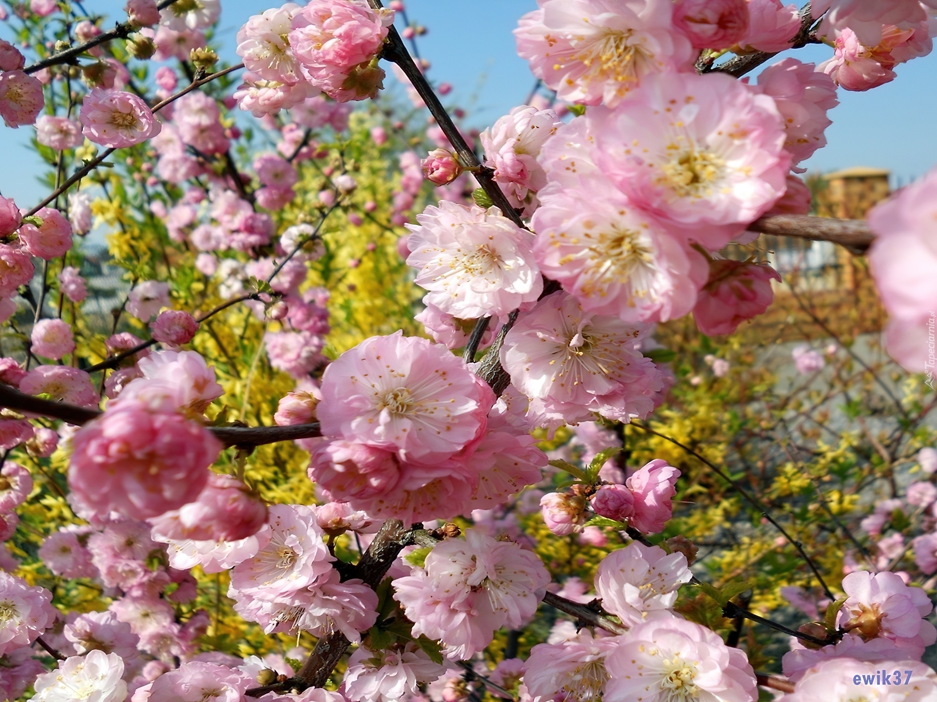 Edytor tapety: Wiosna, Różowe, Kwiaty, Krzew