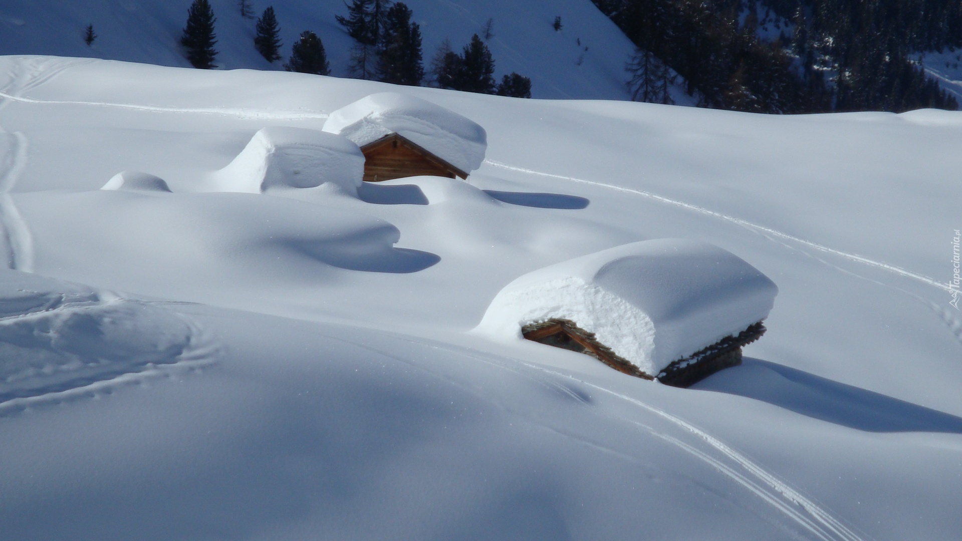 Edytor tapety: Domki, Zasypane, Śniegiem, Zima