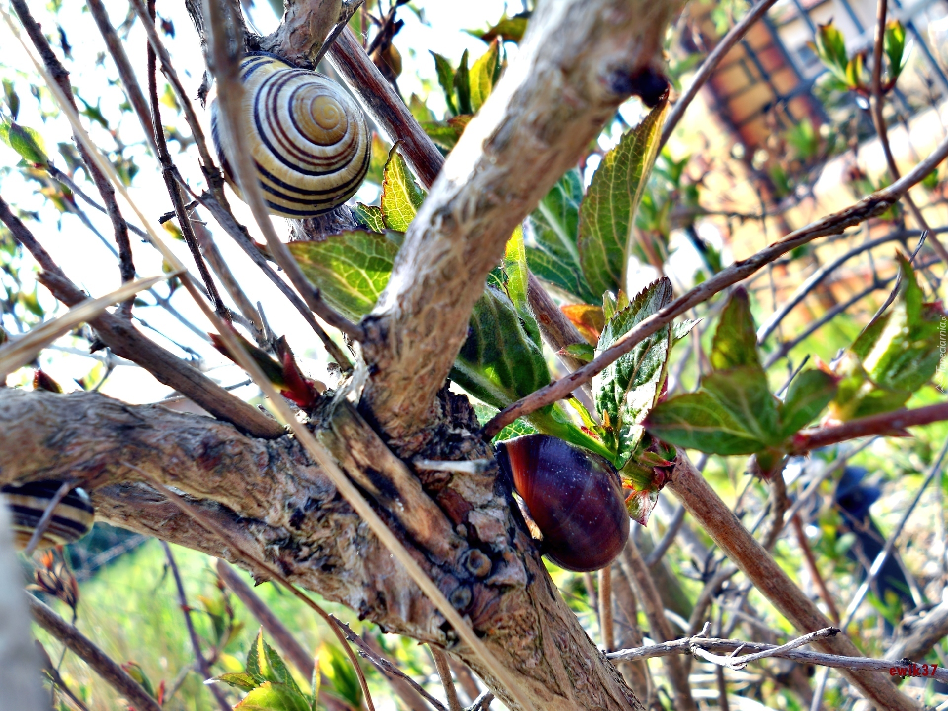 Edytor tapety: Dwa, Ślimaki, Krzak, Ukrycie