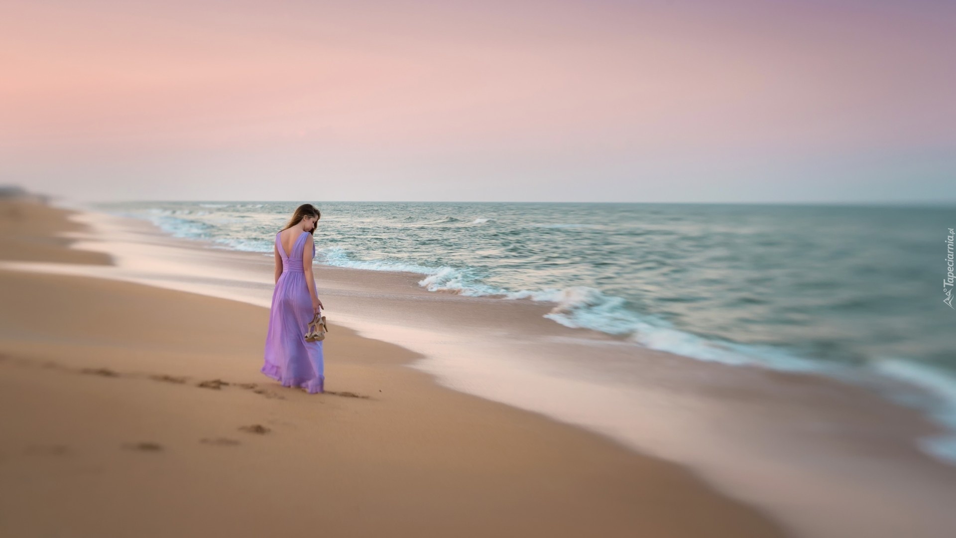 Edytor tapety: Kobieta, Plaża, Morze, Fale, Wschód, Słońca
