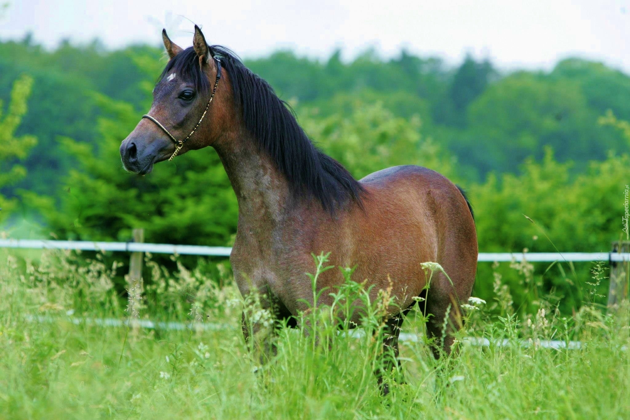 Edytor tapety: Koń, Czarna, Grzywa, Ogrodzenie