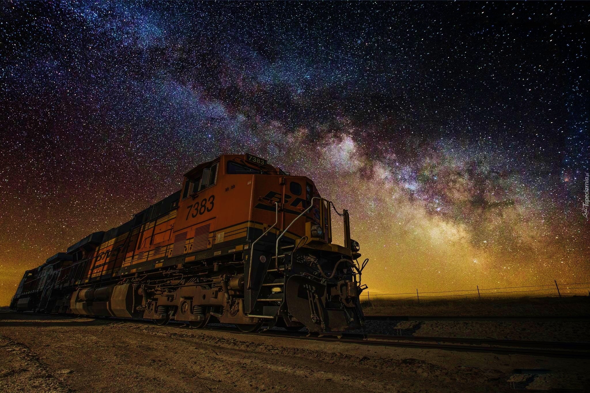 Edytor tapety: Lokomotywa, Noc, Gwiazdy, Niebo