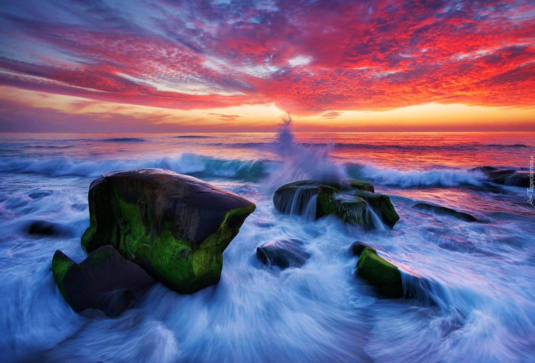 Edytor tapety: Zachód, Słońca, Morze, Kamienie