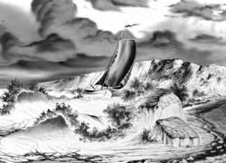 Edytor tapety: Wzburzone, Morze, Fale, Obraz, Jacht
