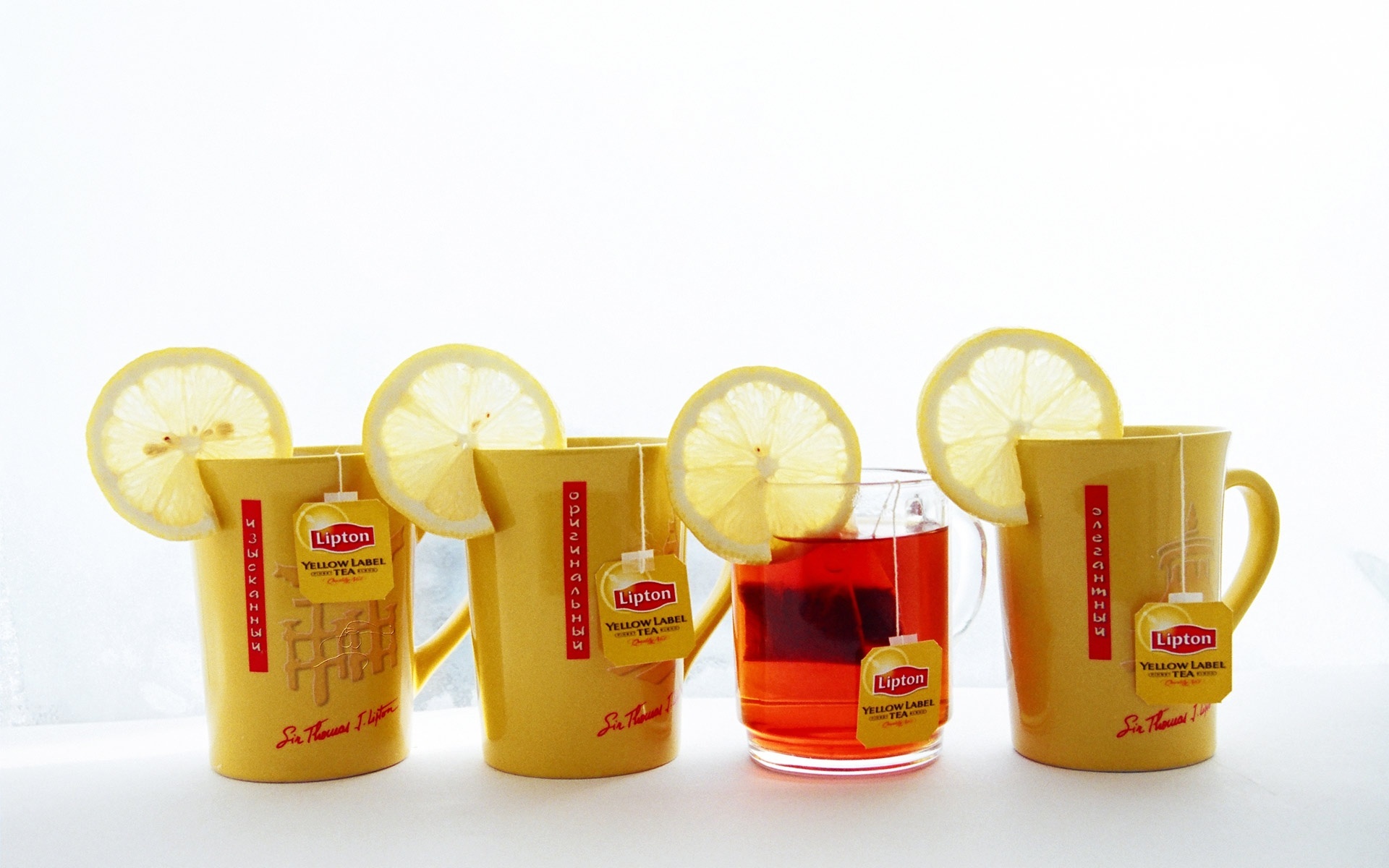 Edytor tapety: Cztery, Kubki, Herbata, Lipton, Cytryna