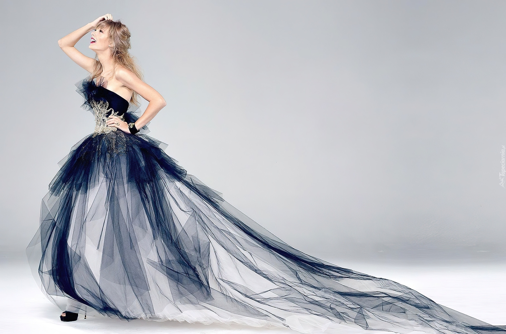 Edytor tapety: Taylor Swift, Uśmiech, Długa, Suknia, Tren