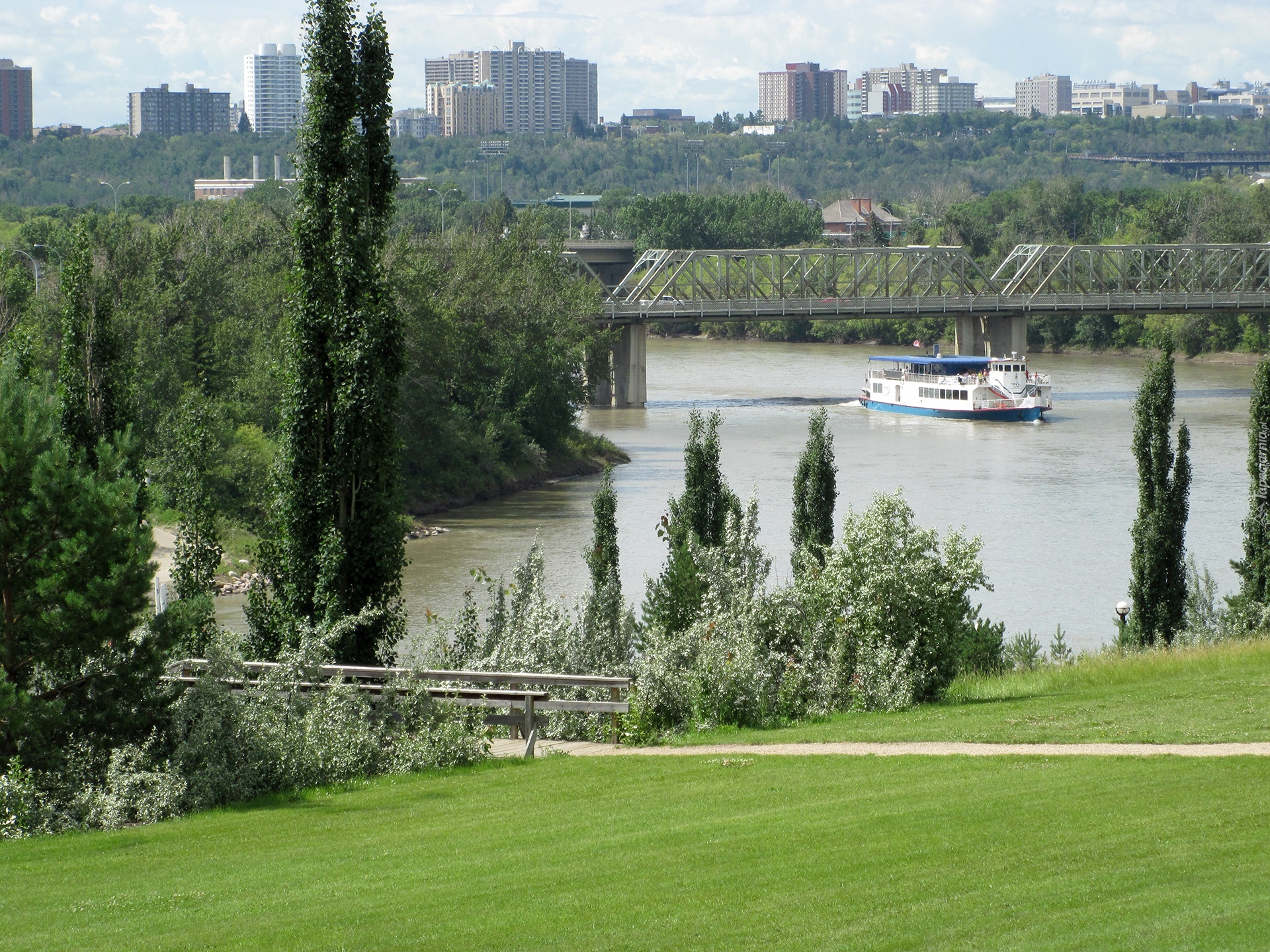 Edytor tapety: Rzeka, Most, Starek, Wycieczkowy, Drzewa