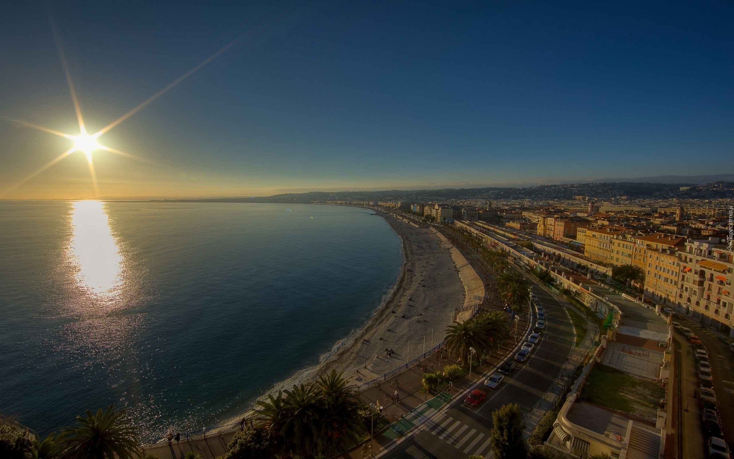 Edytor tapety: Zachód, Słońca, Ocean, Plaża, Miasto