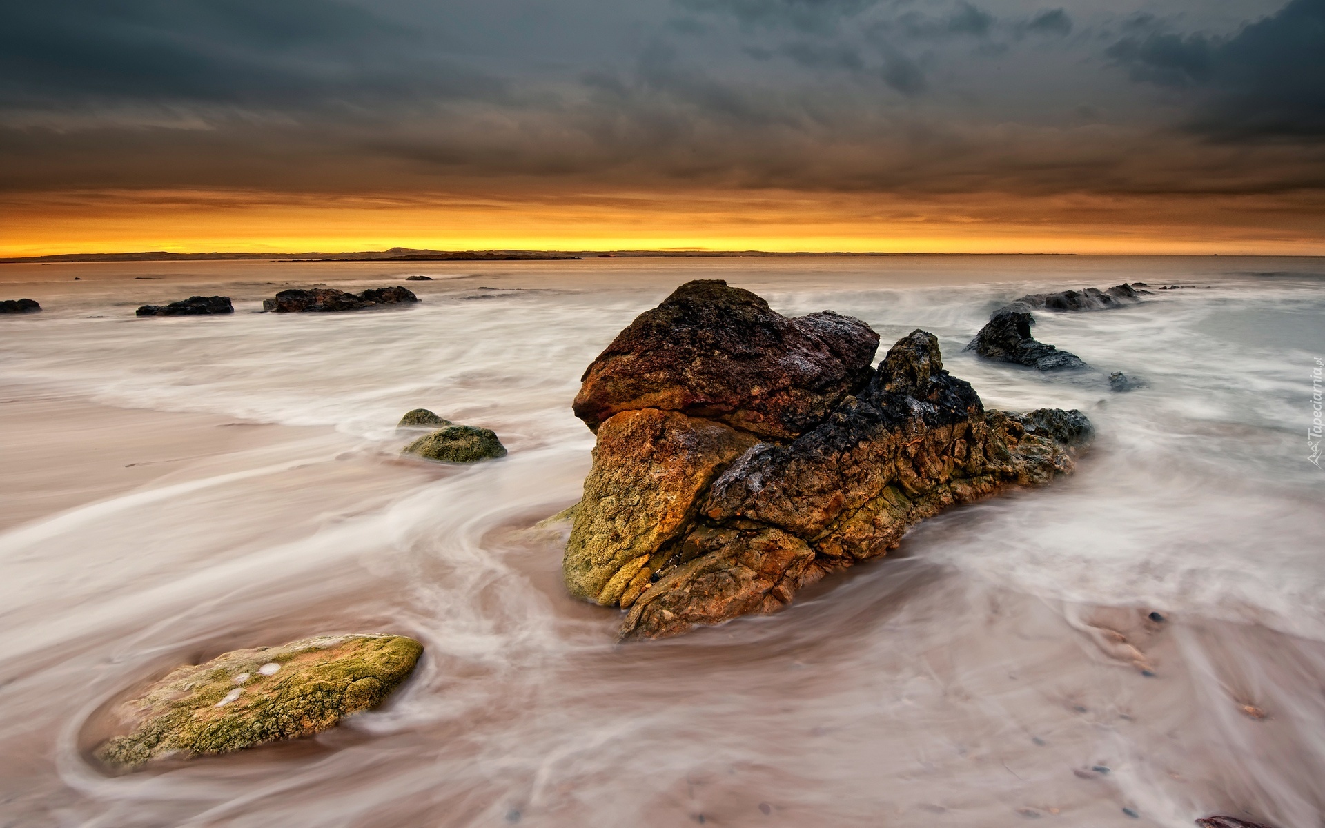 Edytor tapety: Morze, Kamienie, Zachód, Słońca