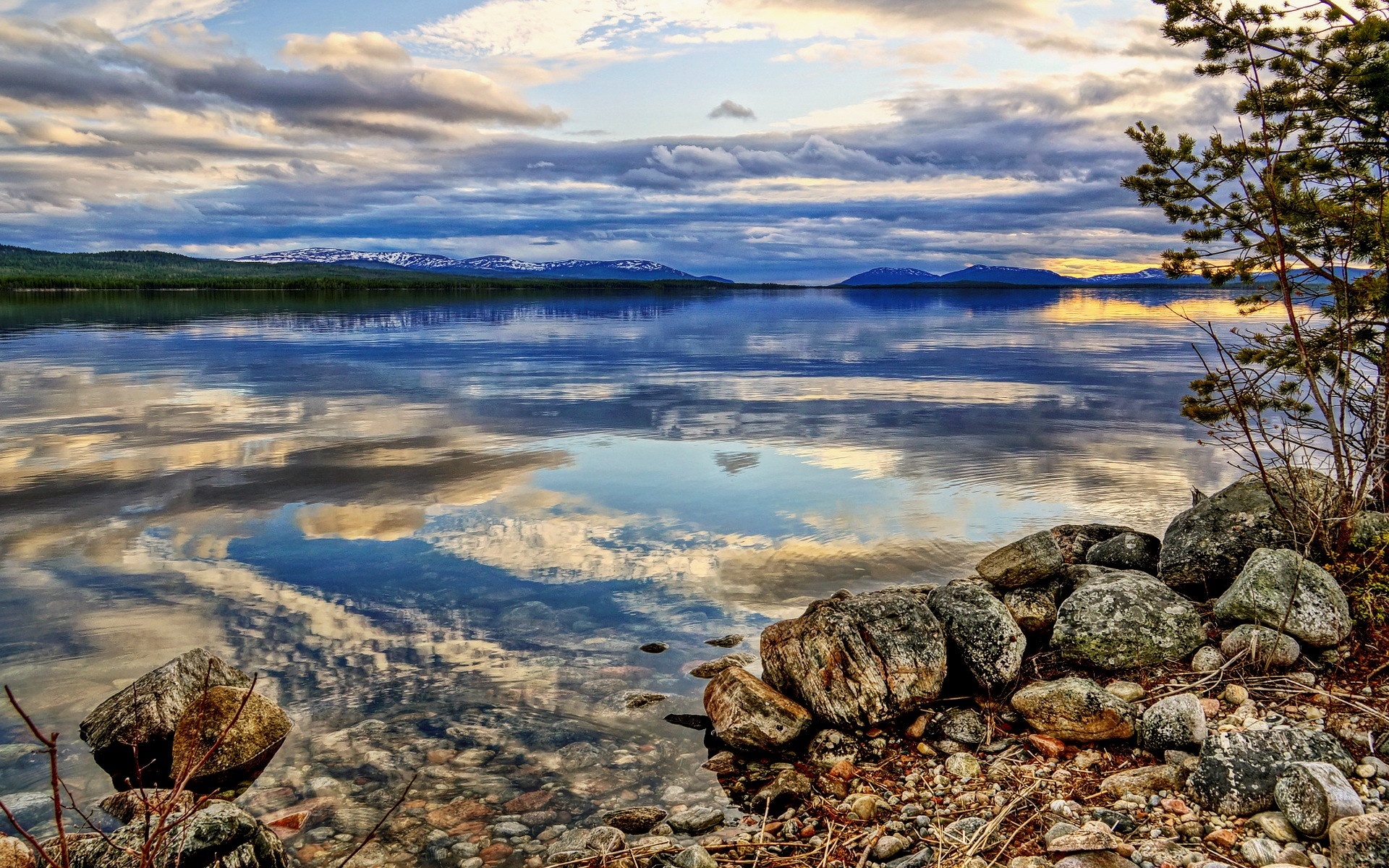 Edytor tapety: Jezioro, Kamienie, Niebo, Odbicie
