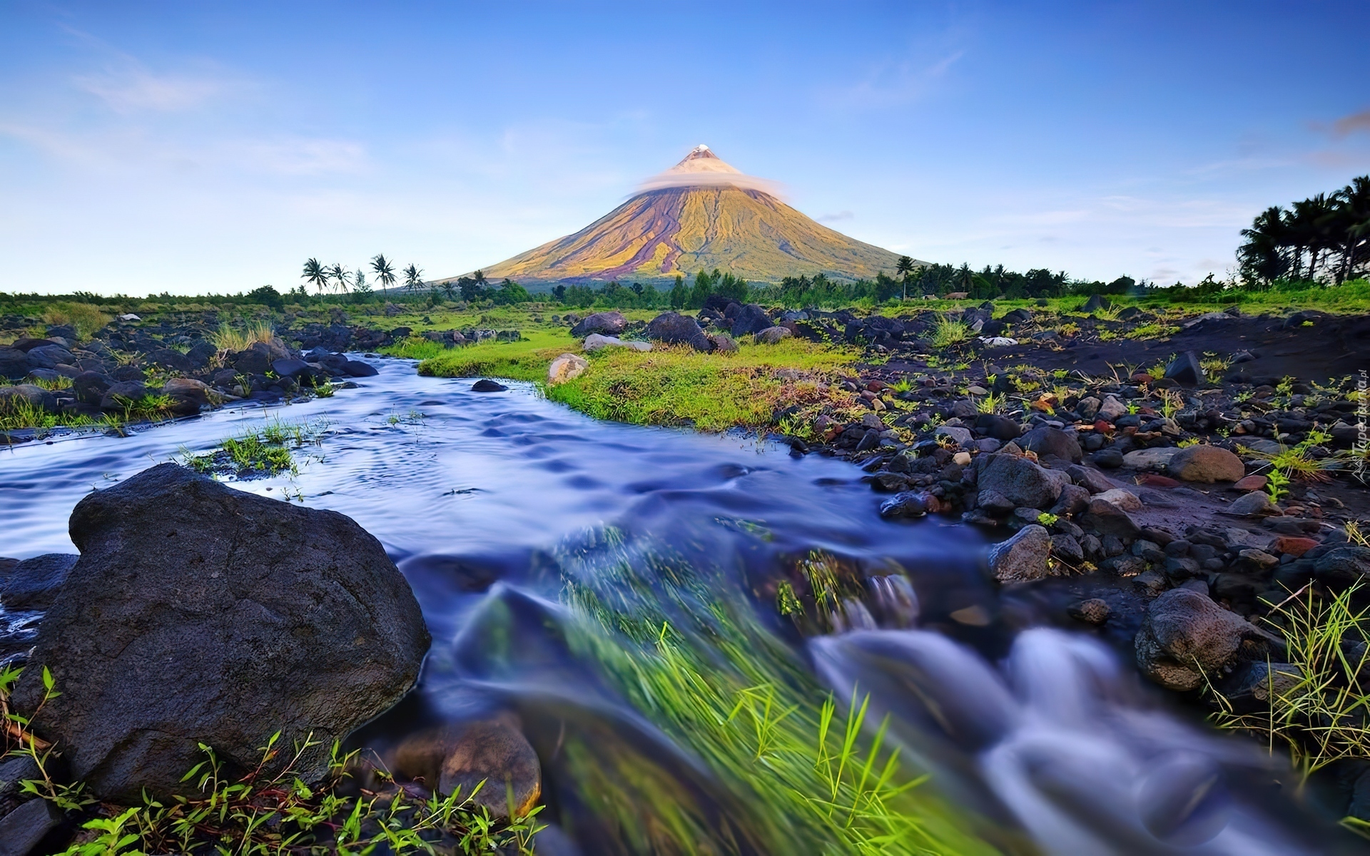 Edytor tapety: Rzeczka, Kamienie, Góra