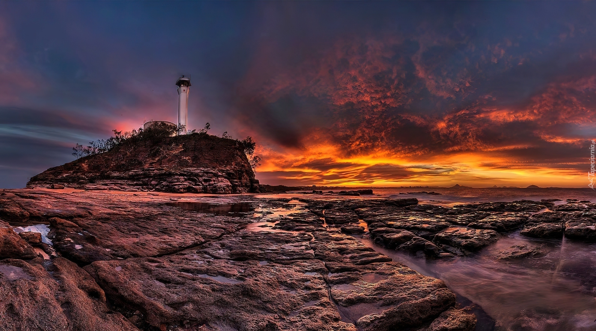 Edytor tapety: Zachód, Słońca, Latarnia, Morska, Skały
