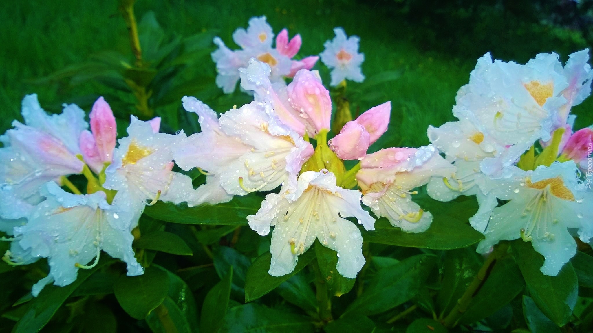 Edytor tapety: Biały, Rododendron, Krople, Rosy