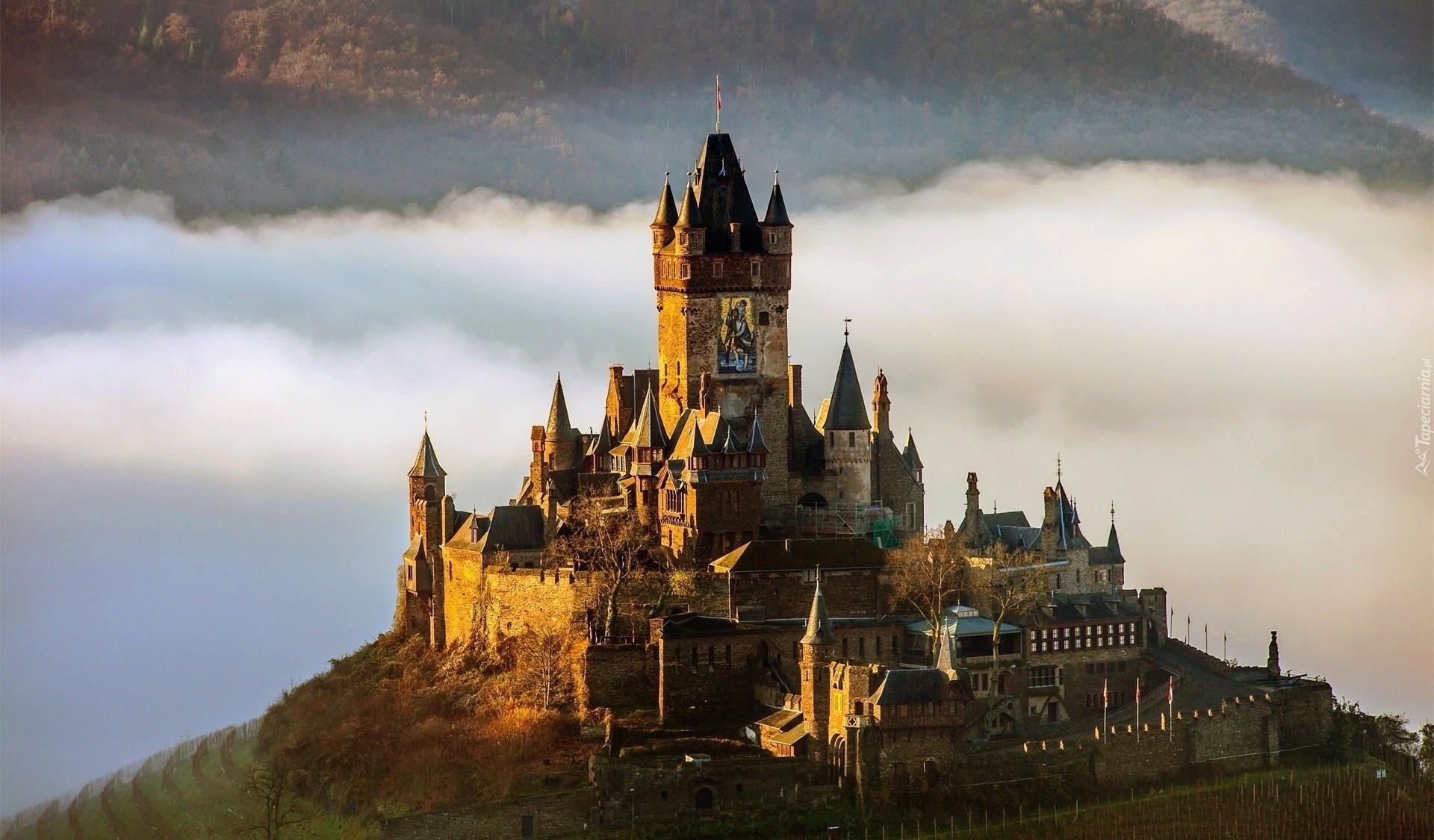 Edytor tapety: Zamek Reichsburg, Miasto Cochem, Niemcy, Mgła