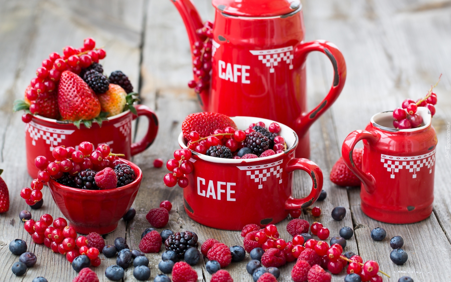 Edytor tapety: Owoce, Kubeczki, Jeżyny, Maliny, Porzeczka, Truskawki, Jagody