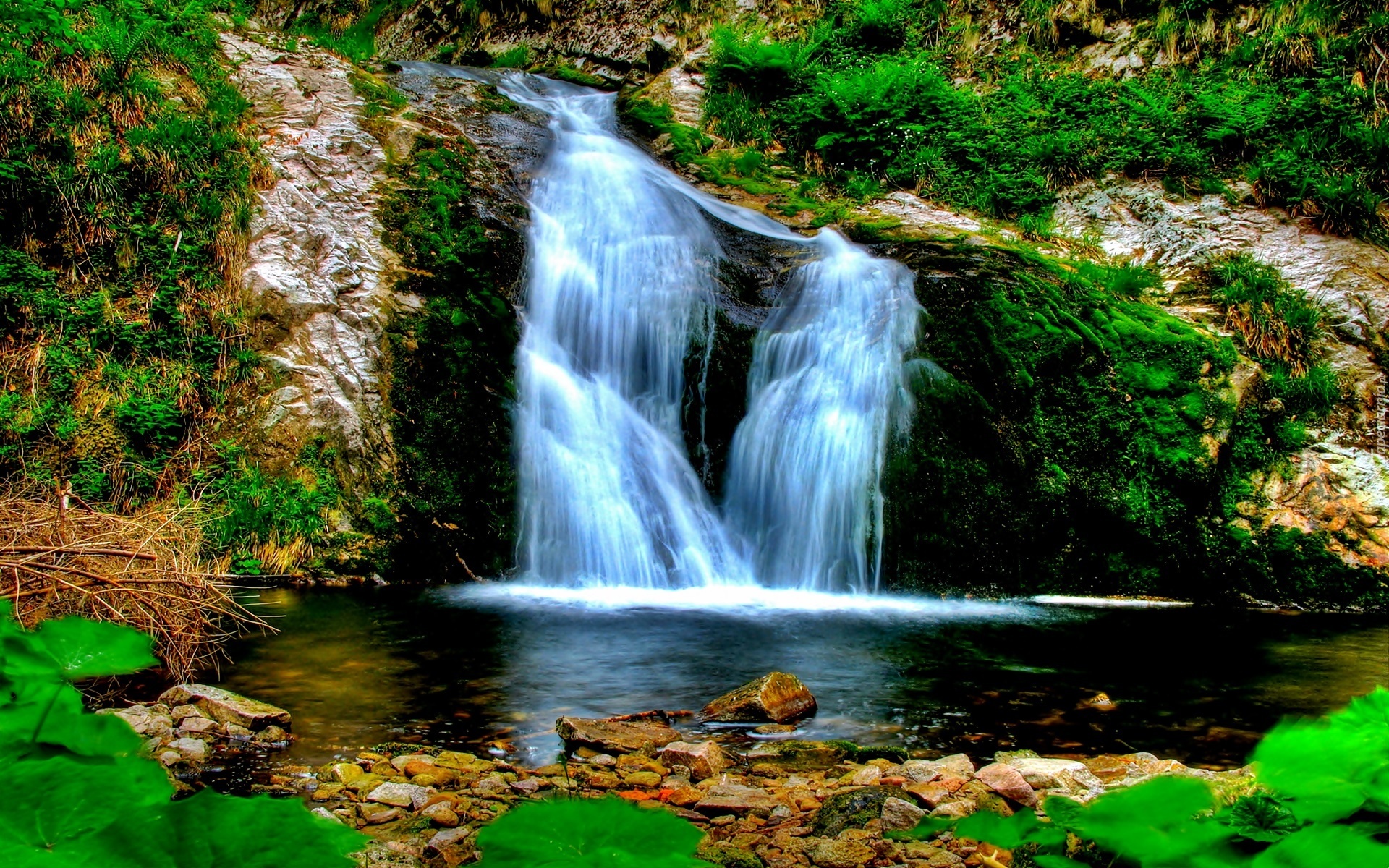 Edytor tapety: Las, Skały, Wodospad, Jezioro, Kamienie