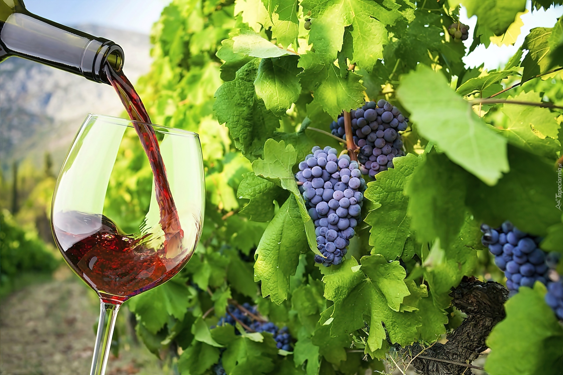 Edytor tapety: Winnica, Krzew, Winogrona, Kieliszek, Czerwone, Wino