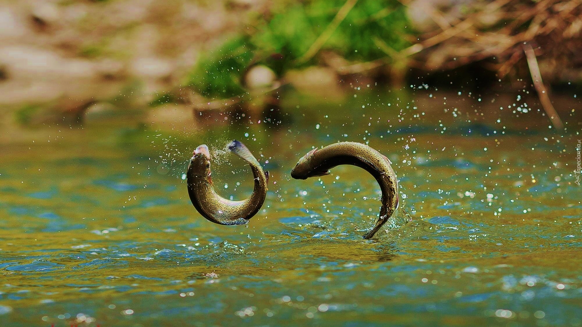 Edytor tapety: Pstrągi, Wyskok, Woda, Krople