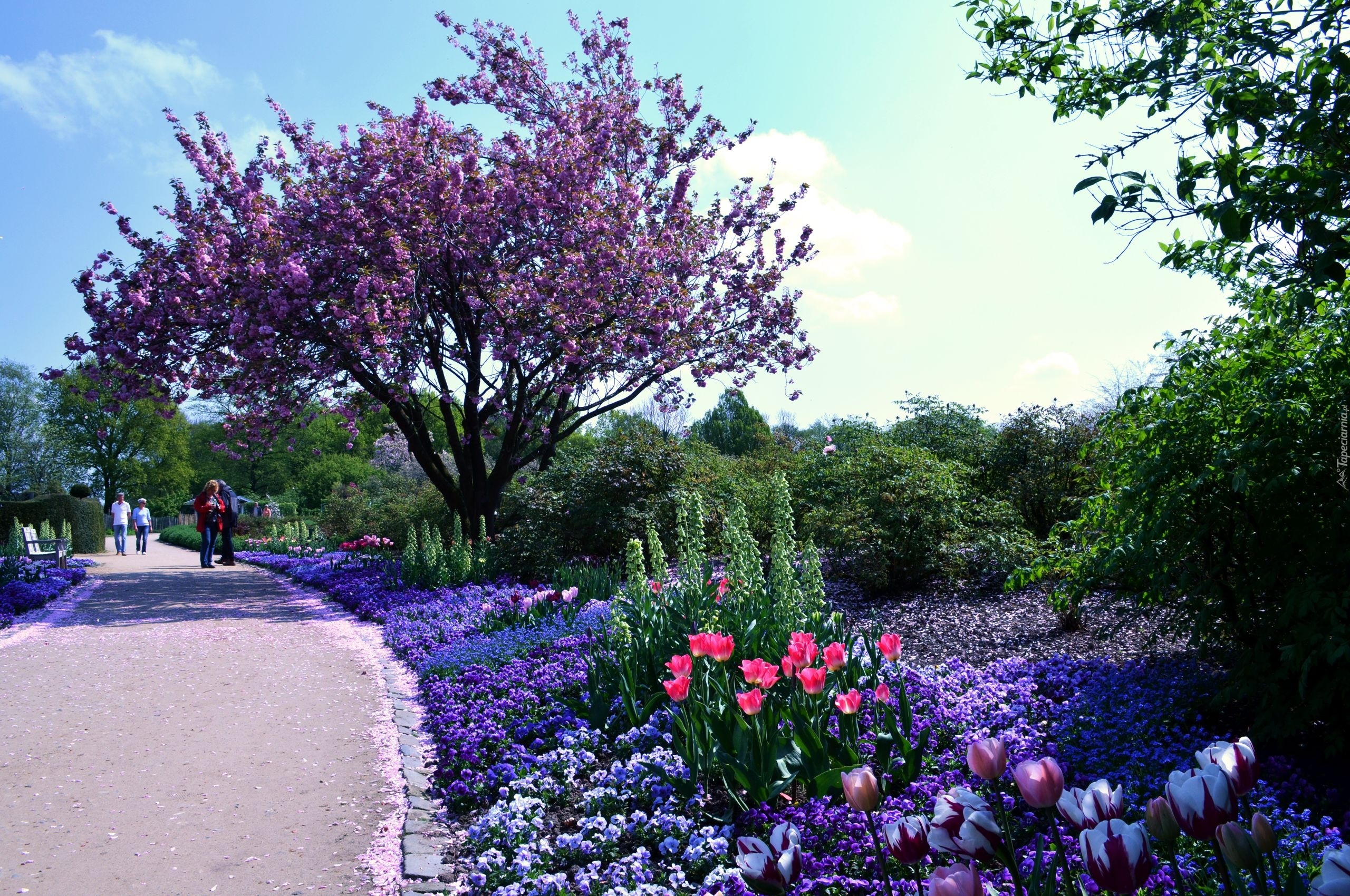 Edytor tapety: Park, Alejka, Kwiaty, Wiosna
