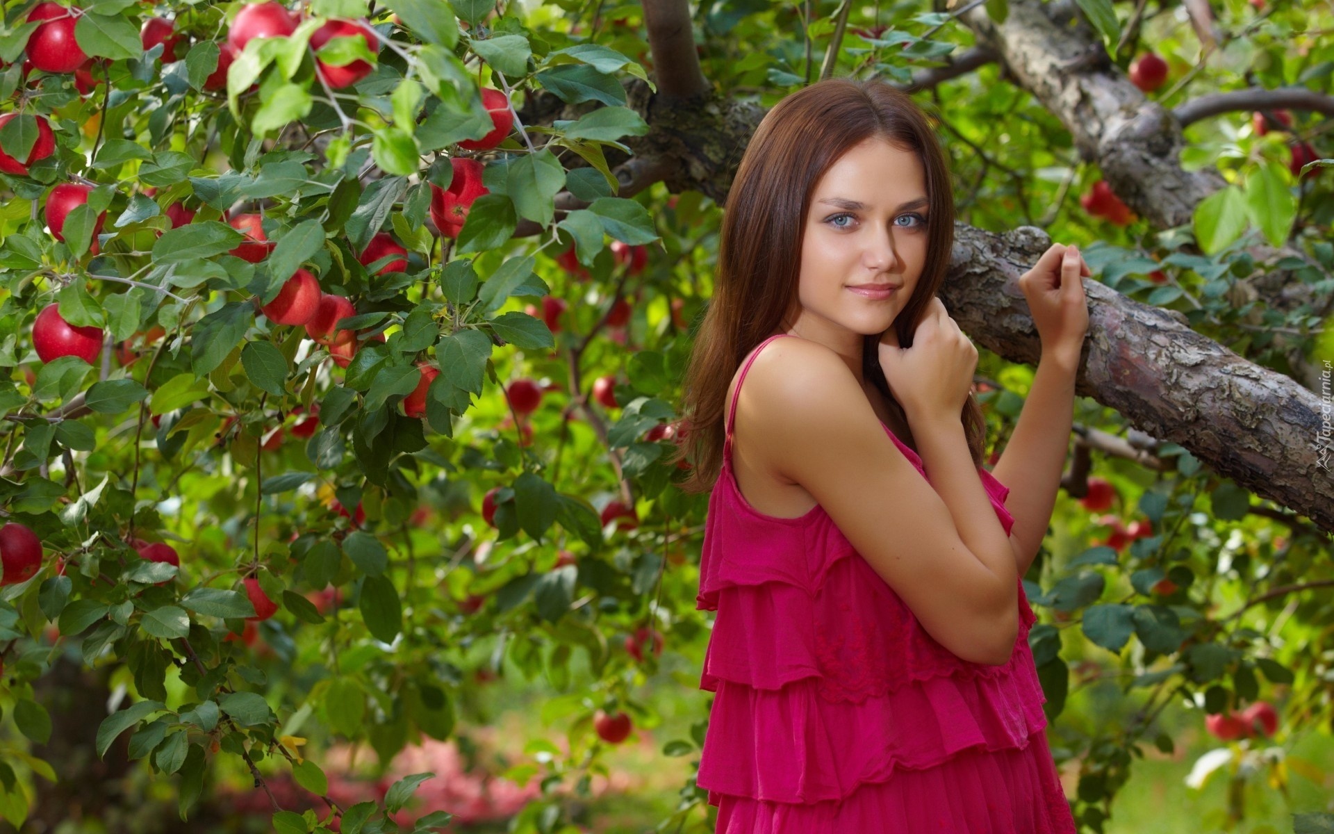 Edytor tapety: Dziewczyna, Ogród, Jabłoń