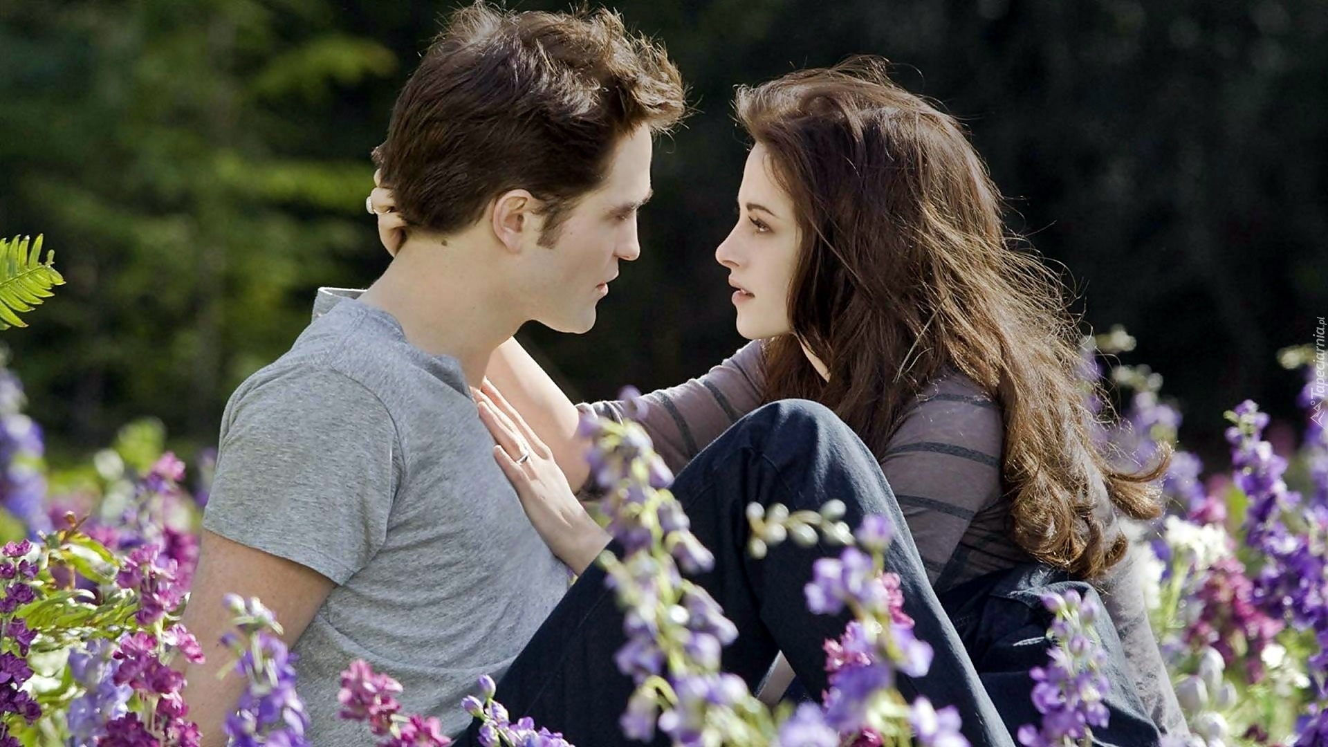 Edytor tapety: Łąka, Kwiaty, Robert Pattinson, Kristen Stewart