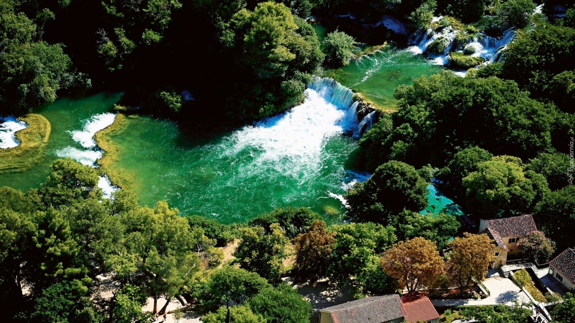 Edytor tapety: Plitwickie, Jeziora, Wodospad, Las, Domy