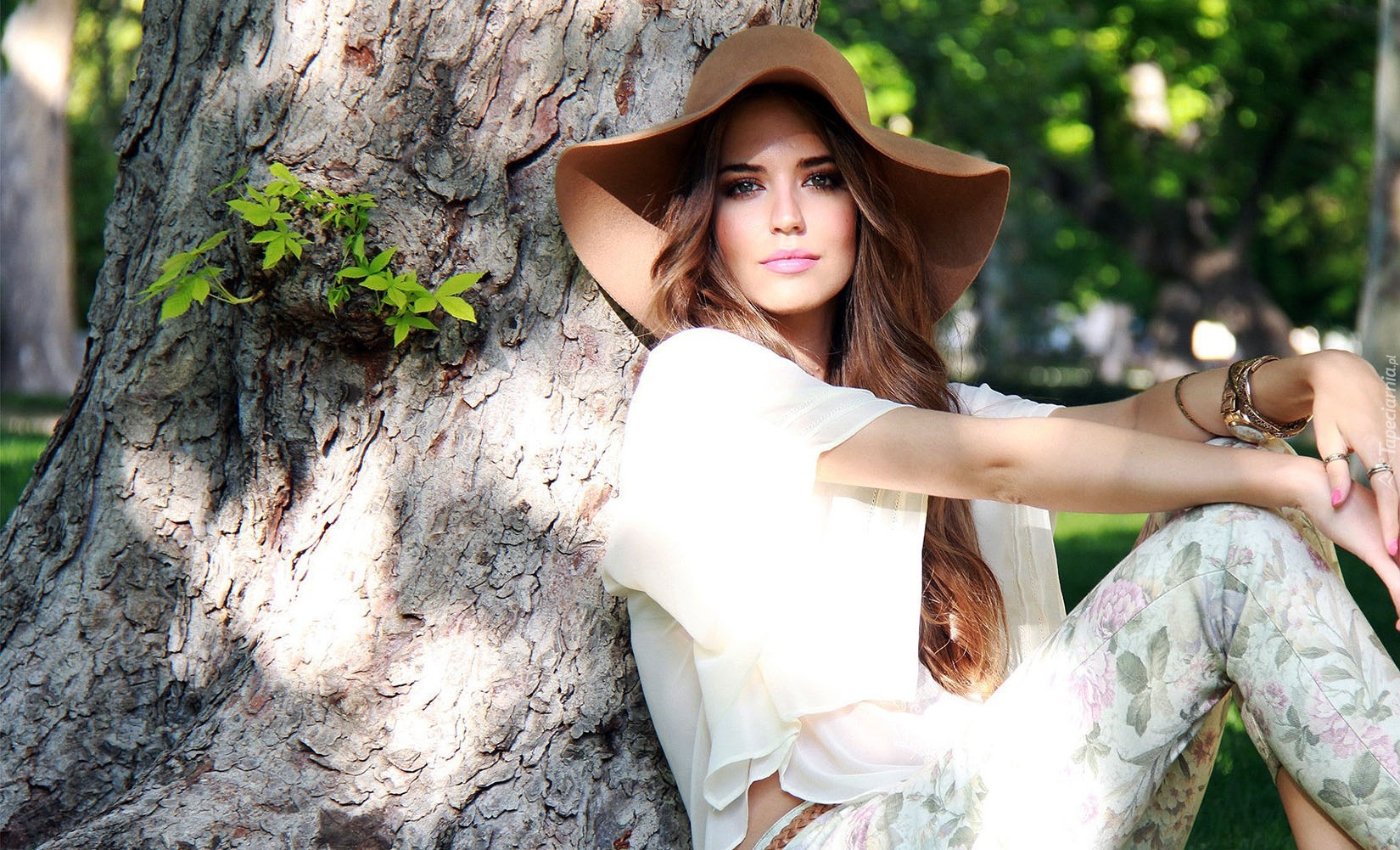 Edytor tapety: Brunetka, Kapelusz, Biżuteria, Drzewo