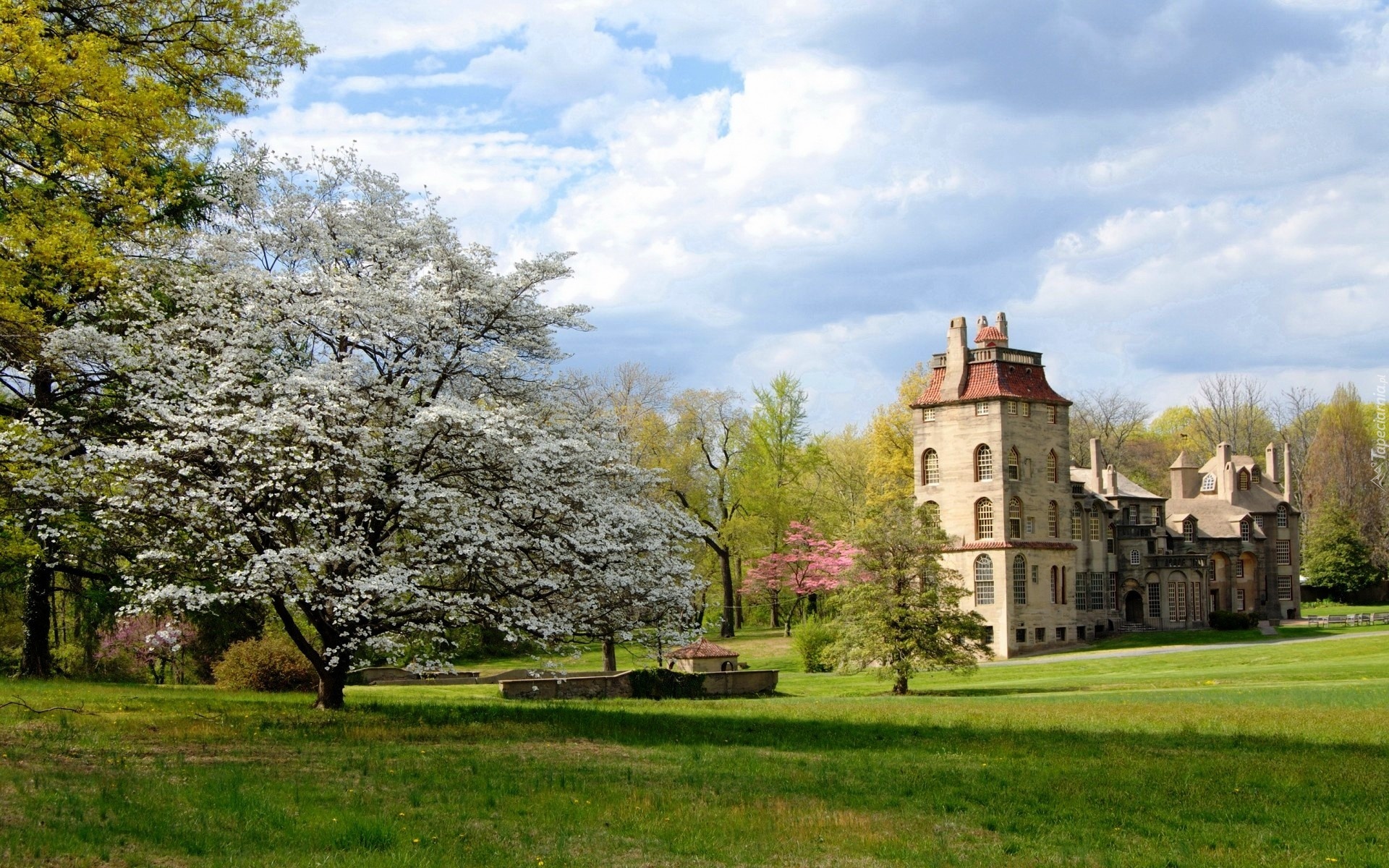 Edytor tapety: Muzeum, Fonthill Castle, Stan Pensylwania, Stany Zjednoczone, Drzewa