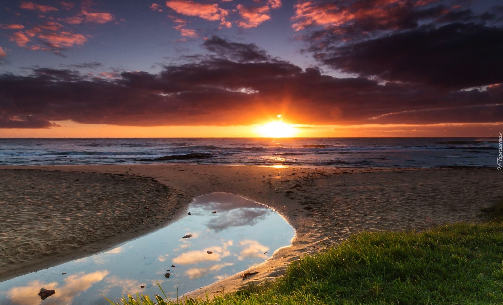 Edytor tapety: Zachód, Słońca, Morze, Plaża