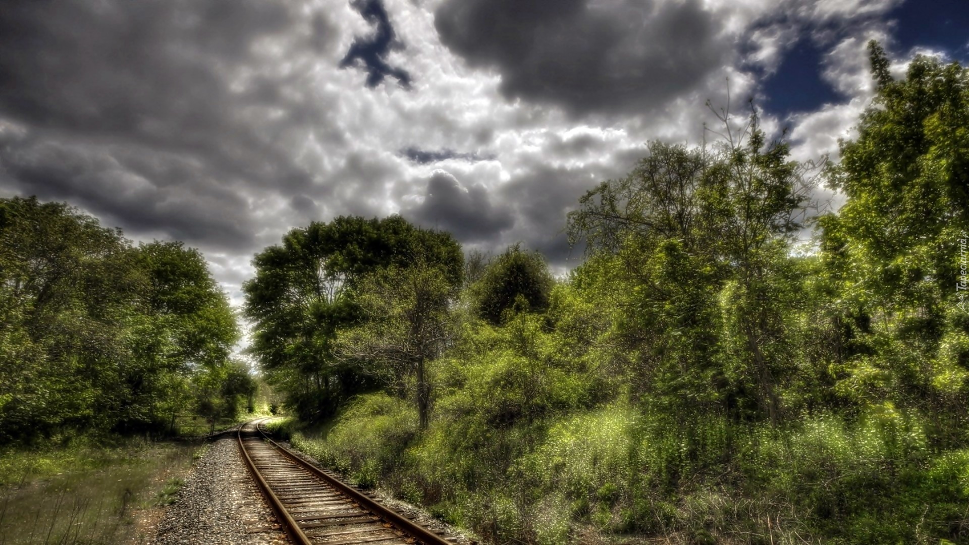 Edytor tapety: Lato, Drzewa, Tor, Kolejowy, Ciemne, Chmury